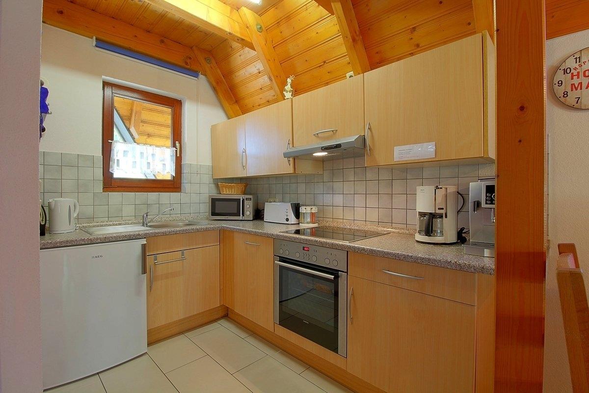 Im Erdgeschoss unseres Hauses befindet sich die Küche mit Mikrowelle, Kaffeemaschine, Geschirrspüler,