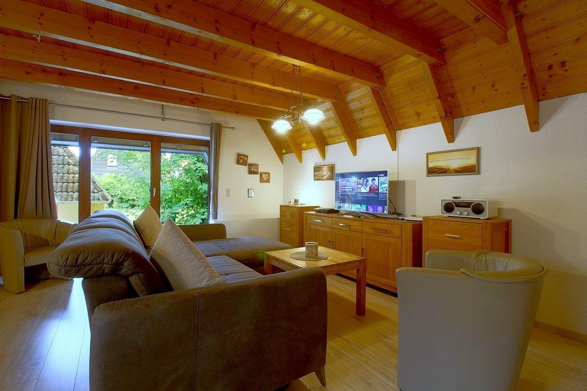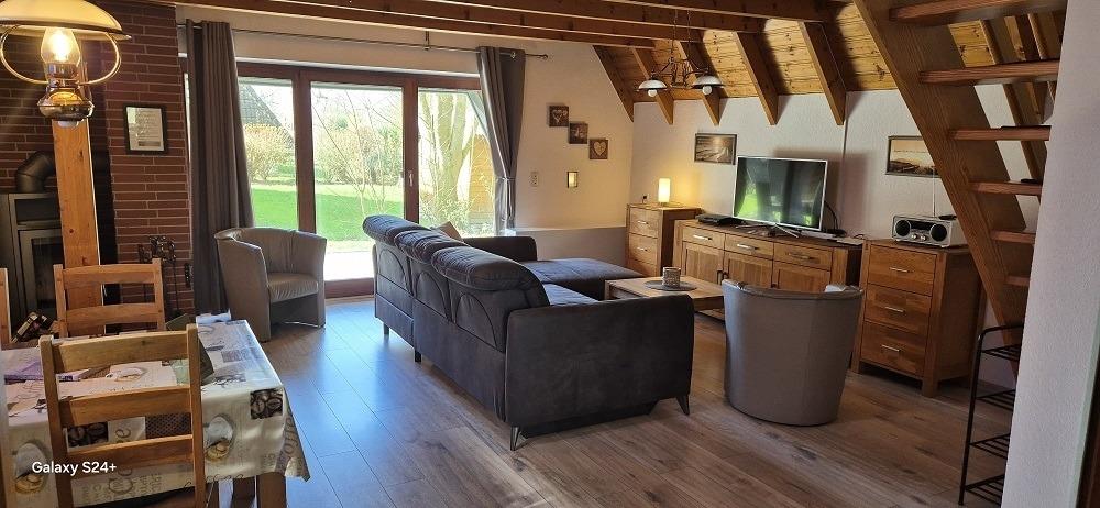 Gemütliche Ferienwohnung mit Kamin, Garten und Terrasse in Dorum-Neufeld für erholsame Urlaubstage.