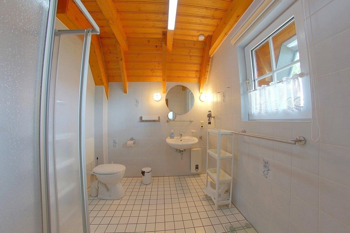 Das Badezimmer ist hell und freundlich und hat ein Tageslichtfenster.