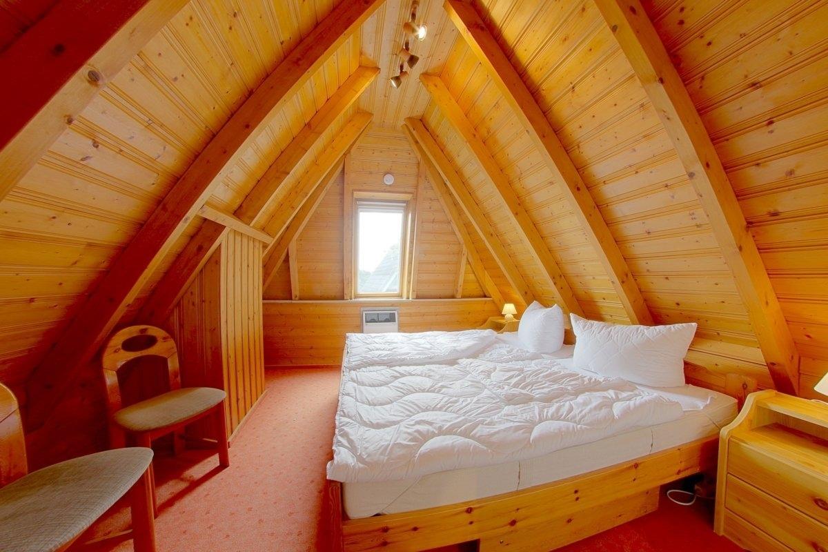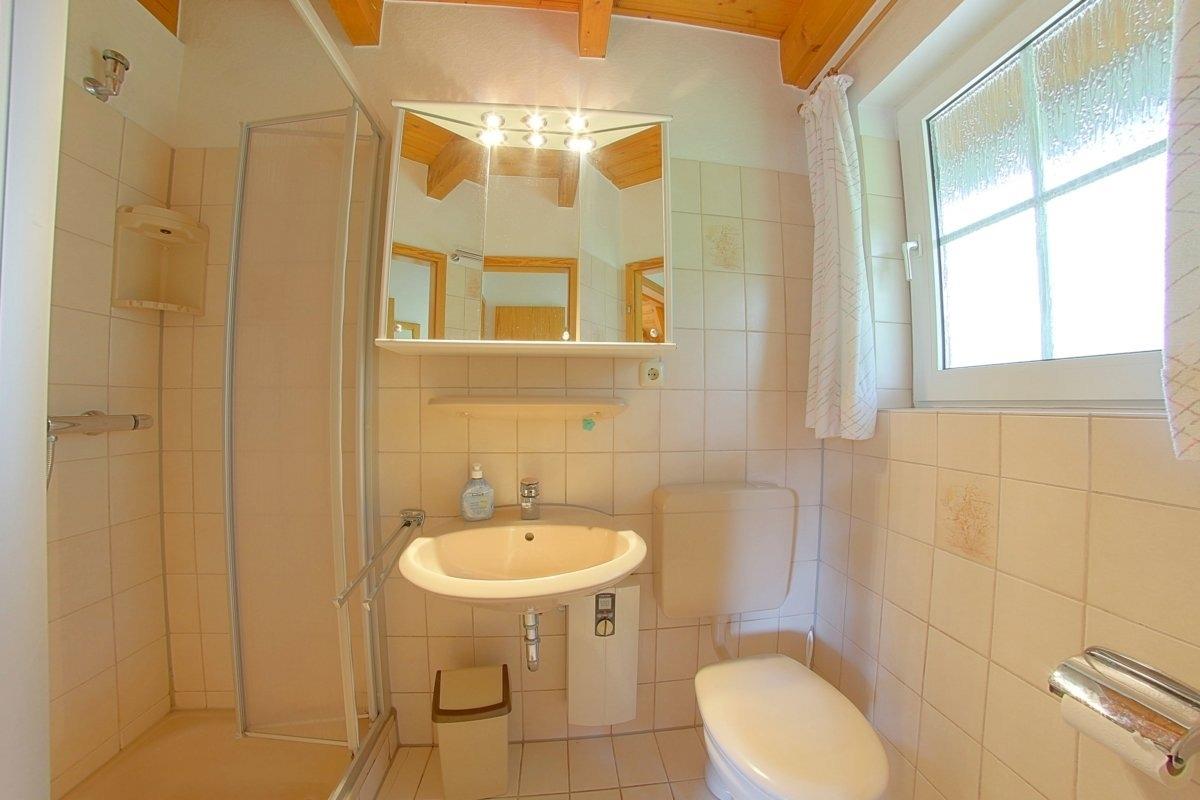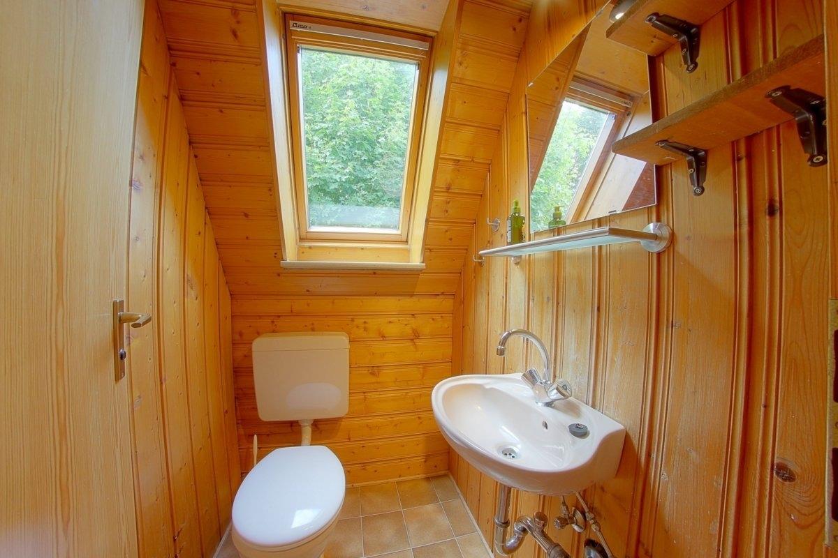 Im Obergeschoss steht Ihnen ein Schlafzimmer mit Doppelbett ( 2 x 2m ), sowie ein Schlafzimmer mit französischem Bett ( 1,50 x 2 m) und ein Einzelbett zur Verfügung, sowie ein separates WC mit Waschbecken. Teppichboden in den Schlafräumen.