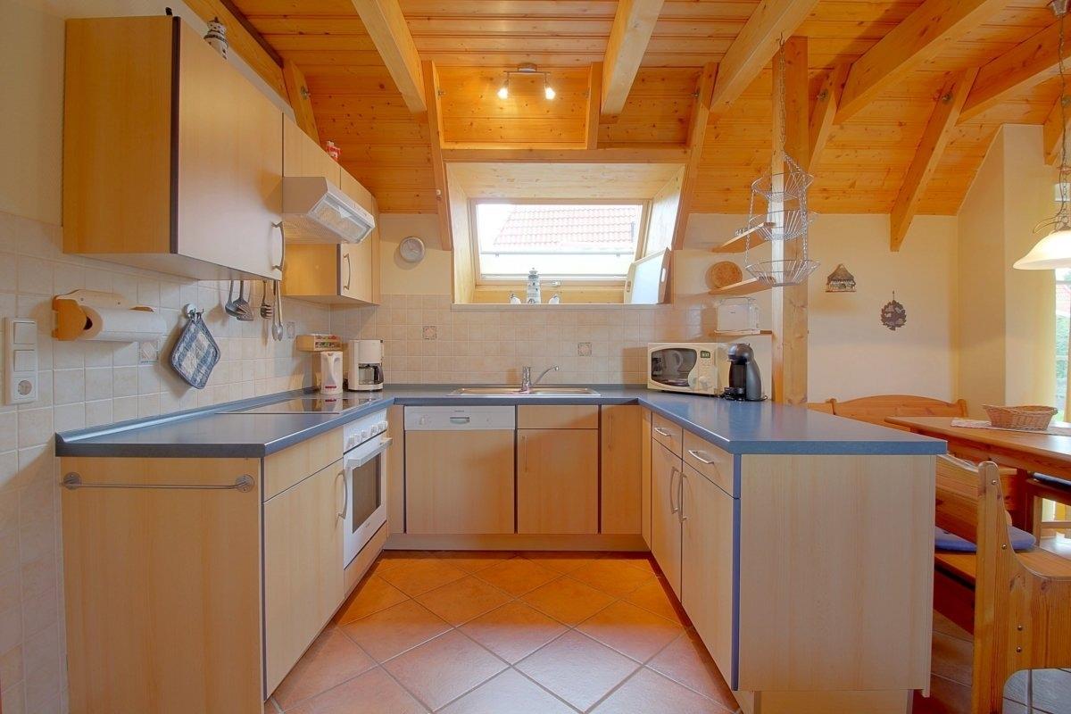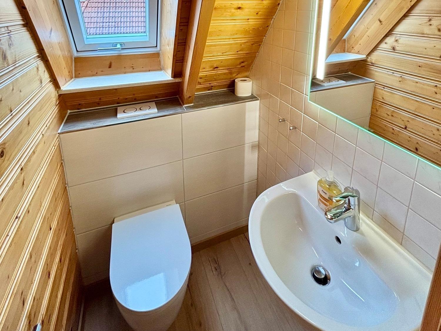 Im Erdgeschoss erwartet Euch ein Neues, modernes Badezimmer mit einer Waschmaschine. Die gut ausgestattete Küche lässt keine Wünsche offen – hier findet Ihr alles, was Ihr für den täglichen Gebrauch benötigt.