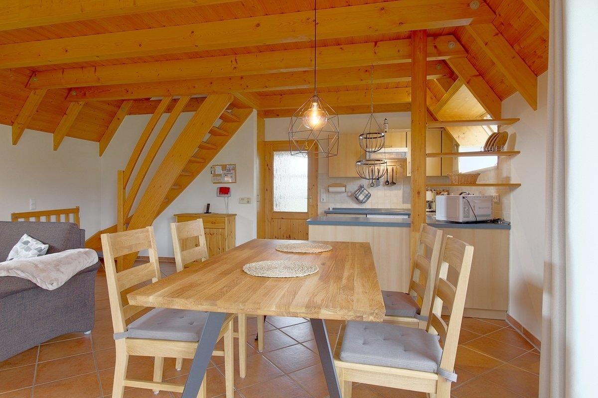 Der offene Wohn- und Essbereich lädt zum Verweilen ein und ist ausgestattet mit einem Smart TV, einer Musikanlage, Gesellschaftsspielen und einer kleinen Bibliothek mit Büchern für jedes Alter.