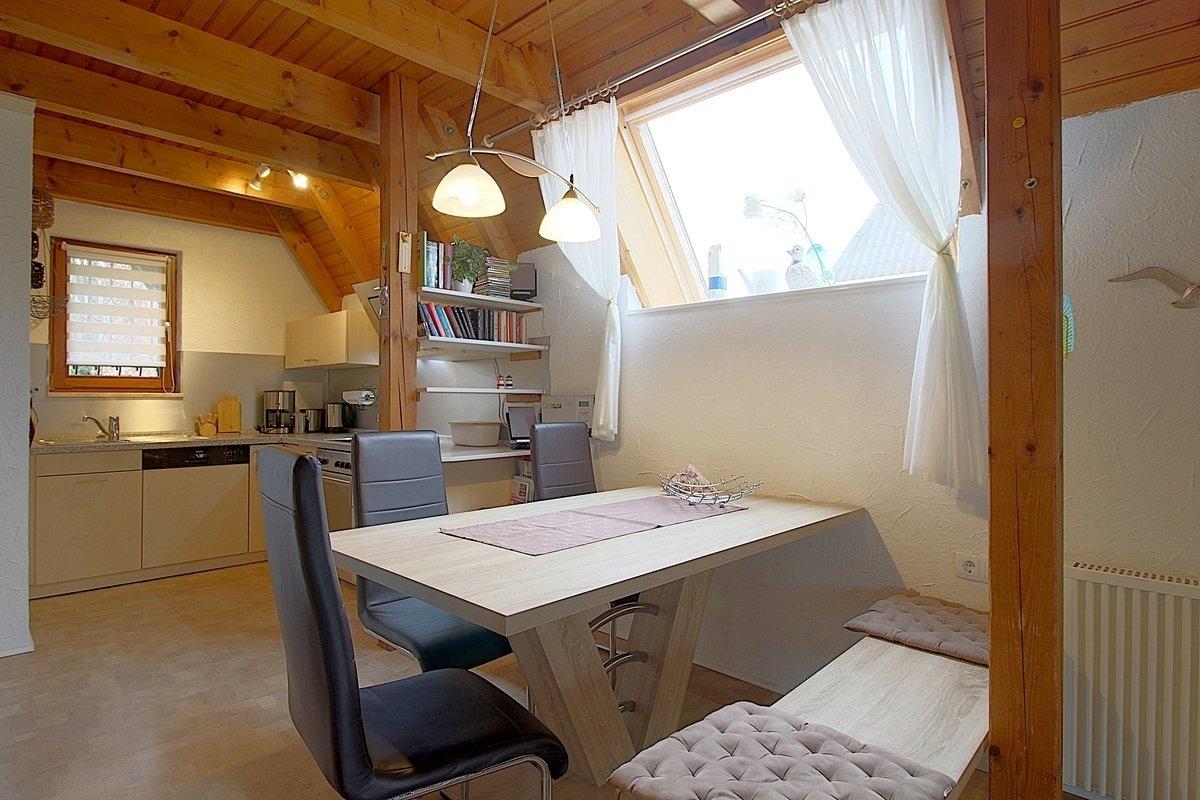 Die Küche ist komplett ausgestattet mit Pött und Pann, Geschirrspüler, Mikrowelle, Backofen etc., damit der Smutje die Familie beköstigen kann. Natürlich können Sie auch in einem der leckeren Fischrestaurants vor Ort essen gehen.