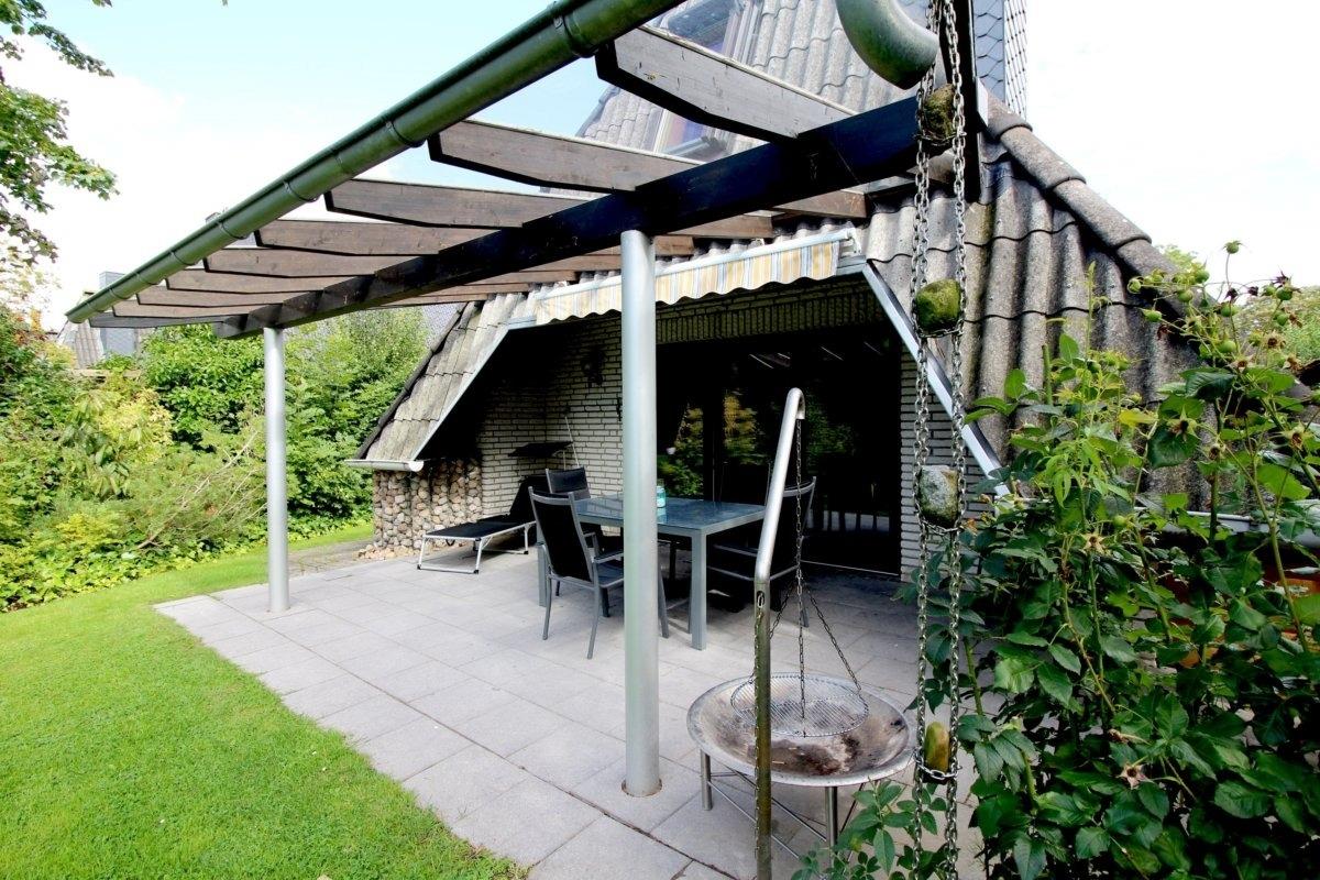 Auf der überdachten Terrssse können Sie, auch wenns mal tröpfelt, noch draußen sitzen.