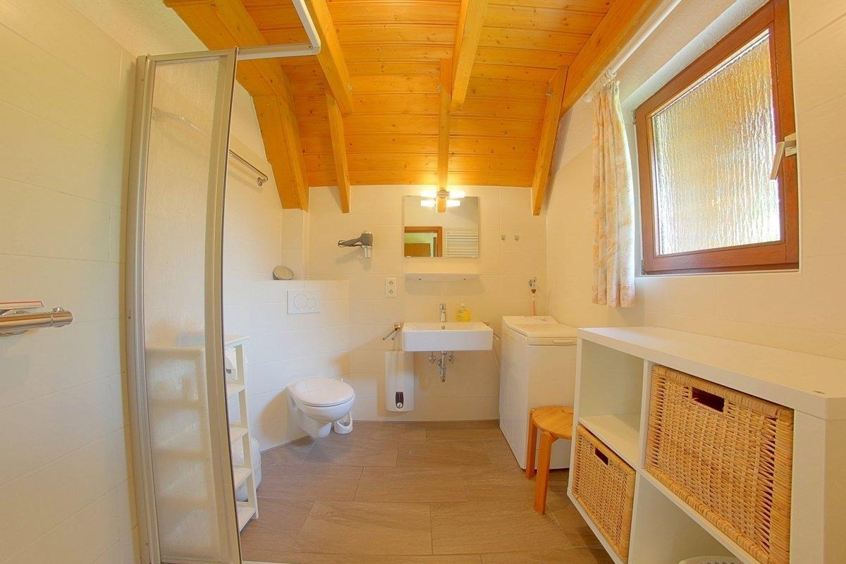 •Bad (neu 2016) mit ebenerdiger Dusche, WC, Waschgelegenheit und Waschmaschine