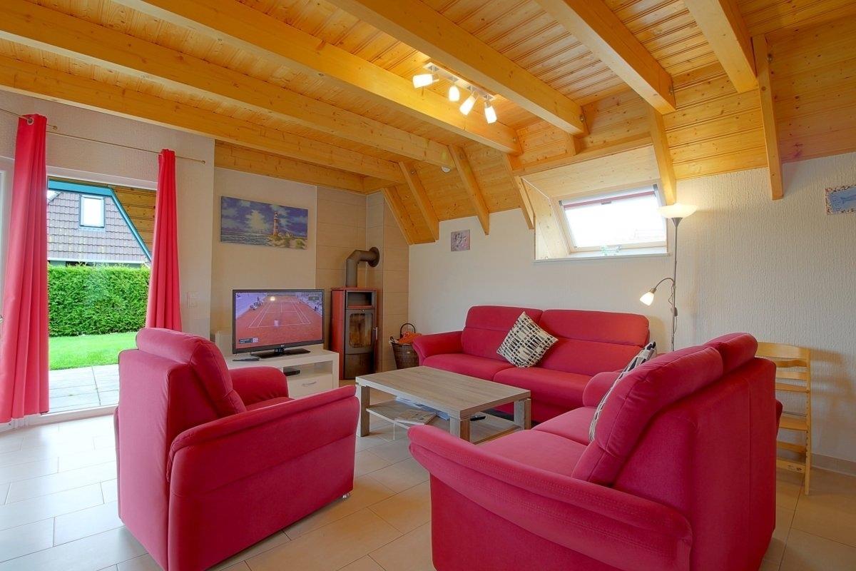 Gemütliche Ferienwohnung mit Kamin, WLAN und Garten in Dorum-Neufeld, ideal für entspannte Tage am Wattenmeer.
