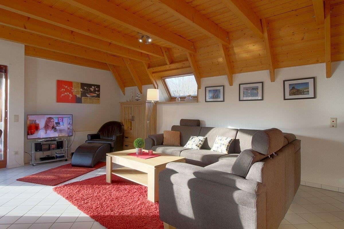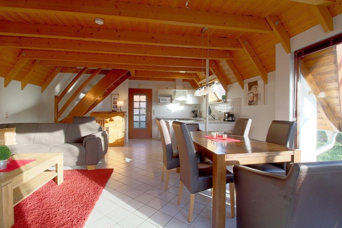 Das Ferienhaus besteht aus einem großzügigen Wohn-/Essbereich mit moderner Einbauküche, Esstisch mit Stühlen und einem schicken modernen Wohnbereich zum Wohlfühlen. Ein modernes Duschbad befindet sich im Erdgeschoss. Das gesamte Erdgeschoss ist mit hellen Fliesen ausgestattet. Kostenloses W-LAN ist vorhanden.