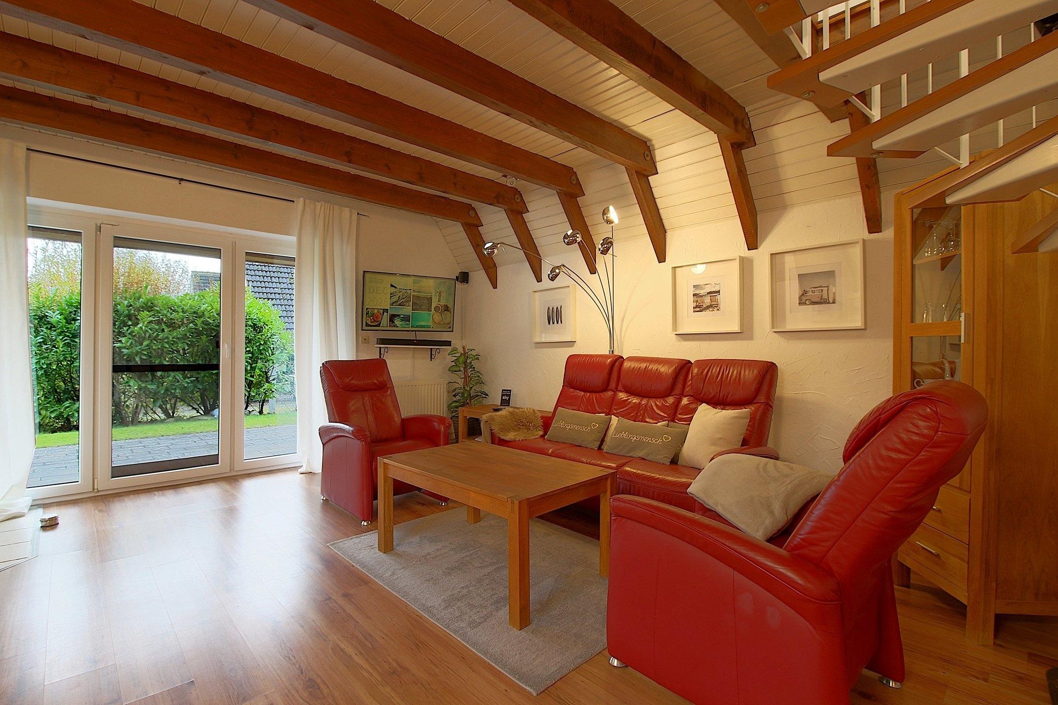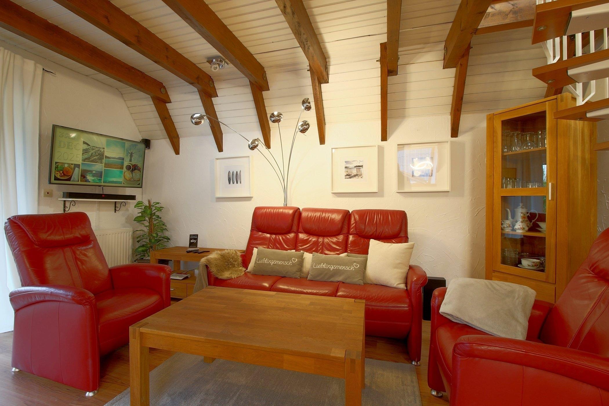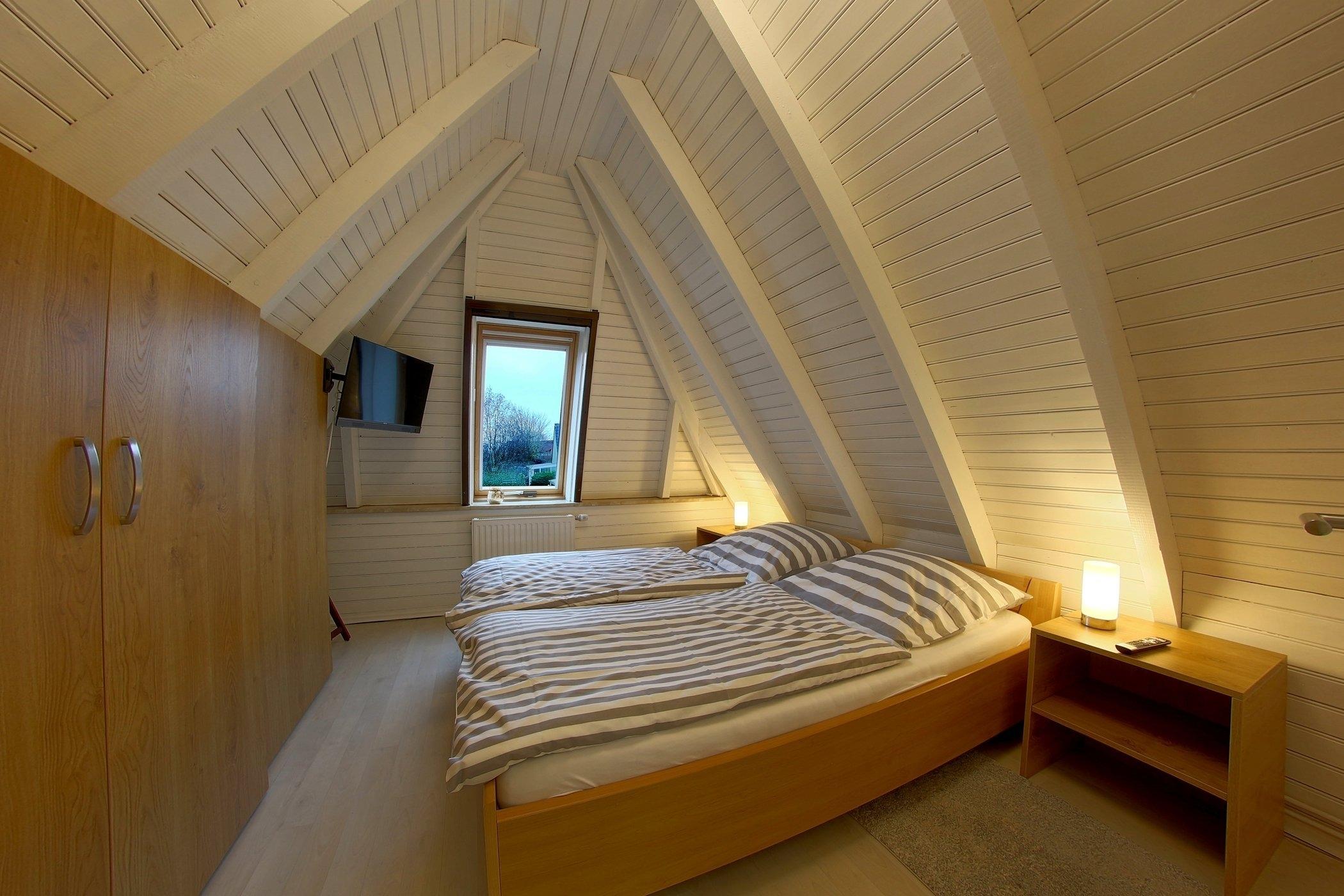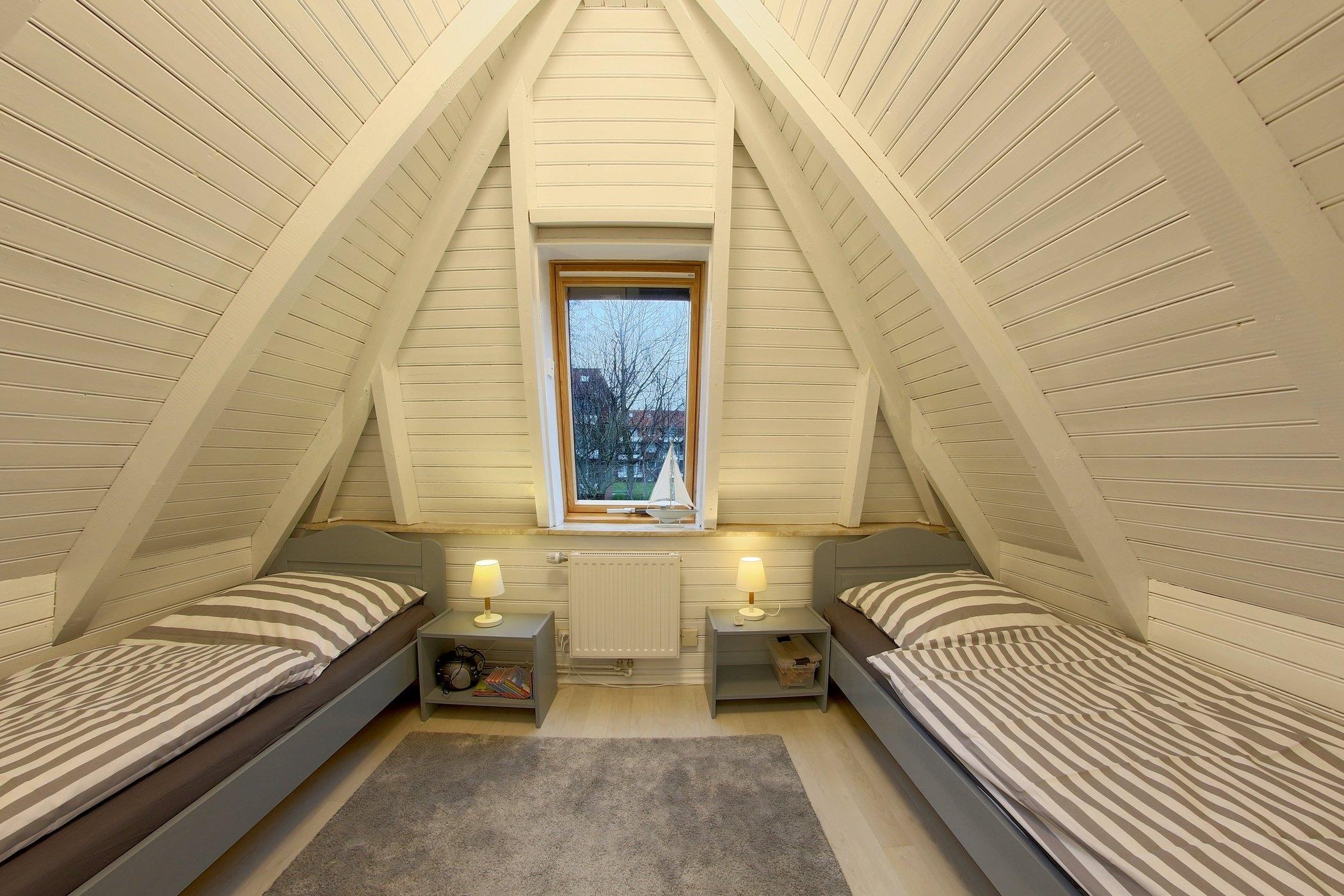 Ein weiteres Schlafzimmer mit 2 Einzelbetten befindet sich gegenüber auf der anderen Giebelseite. Auch dieses Schlafzimmer hat einen Flachbildfernseher. Verbunden sind beide Schlafzimmer mit einer gemütlichen Sitzecke, die zum Verweilen und Lesen einlädt.