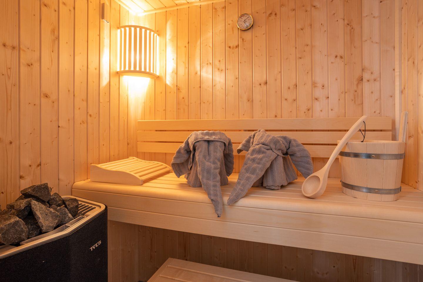 Das Penthouse bietet zwei separate Schlafzimmer. Im ersten Schlafzimmer schläfst du in einem gemütlichen Doppelbett. Hier steht dir zusätzlich ein TV-Gerät zur Verfügung. Im zweiten Schlafzimmer befinden sich zwei Einzelbetten. Ideal für Kinder oder Freunde.