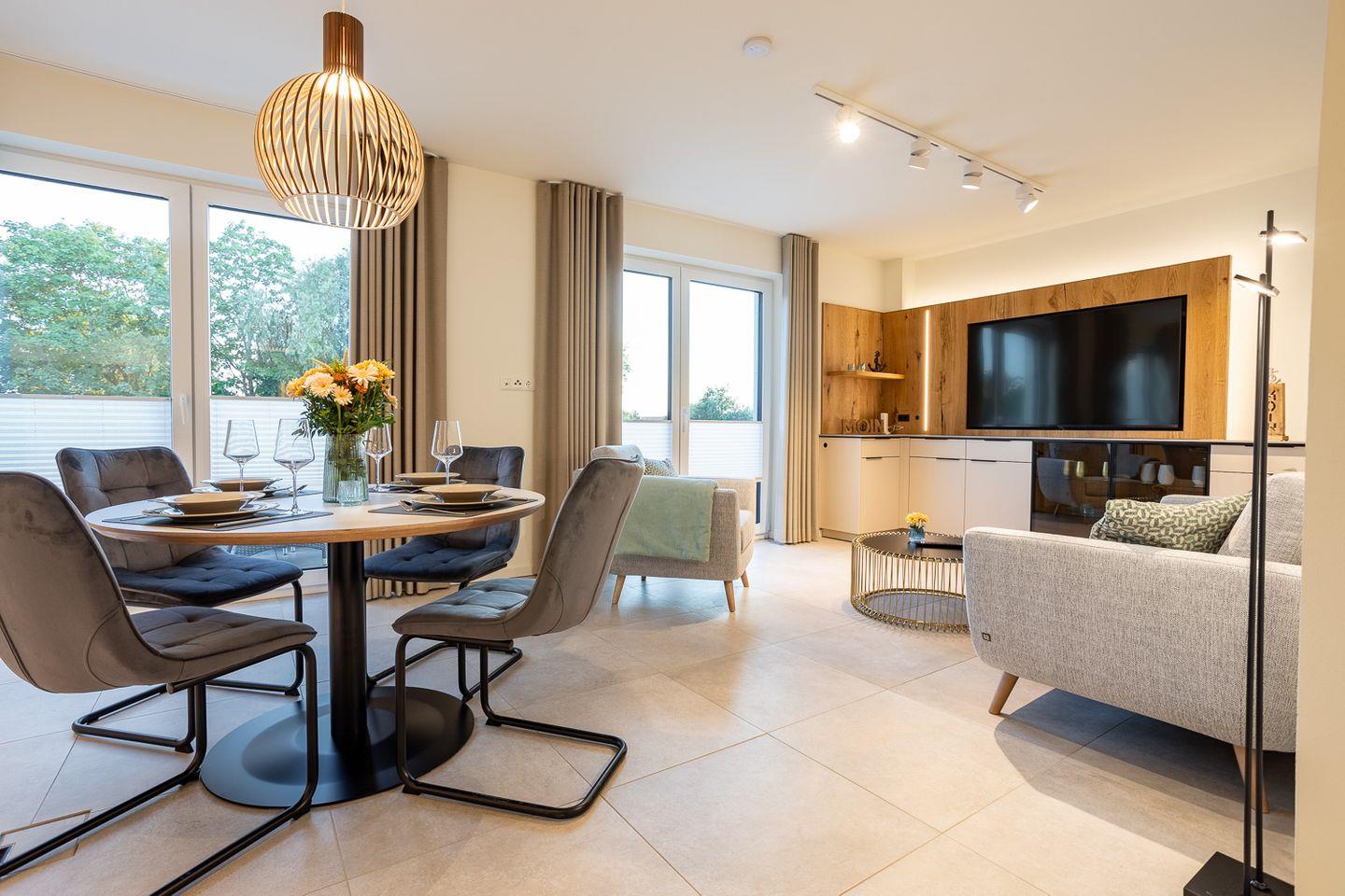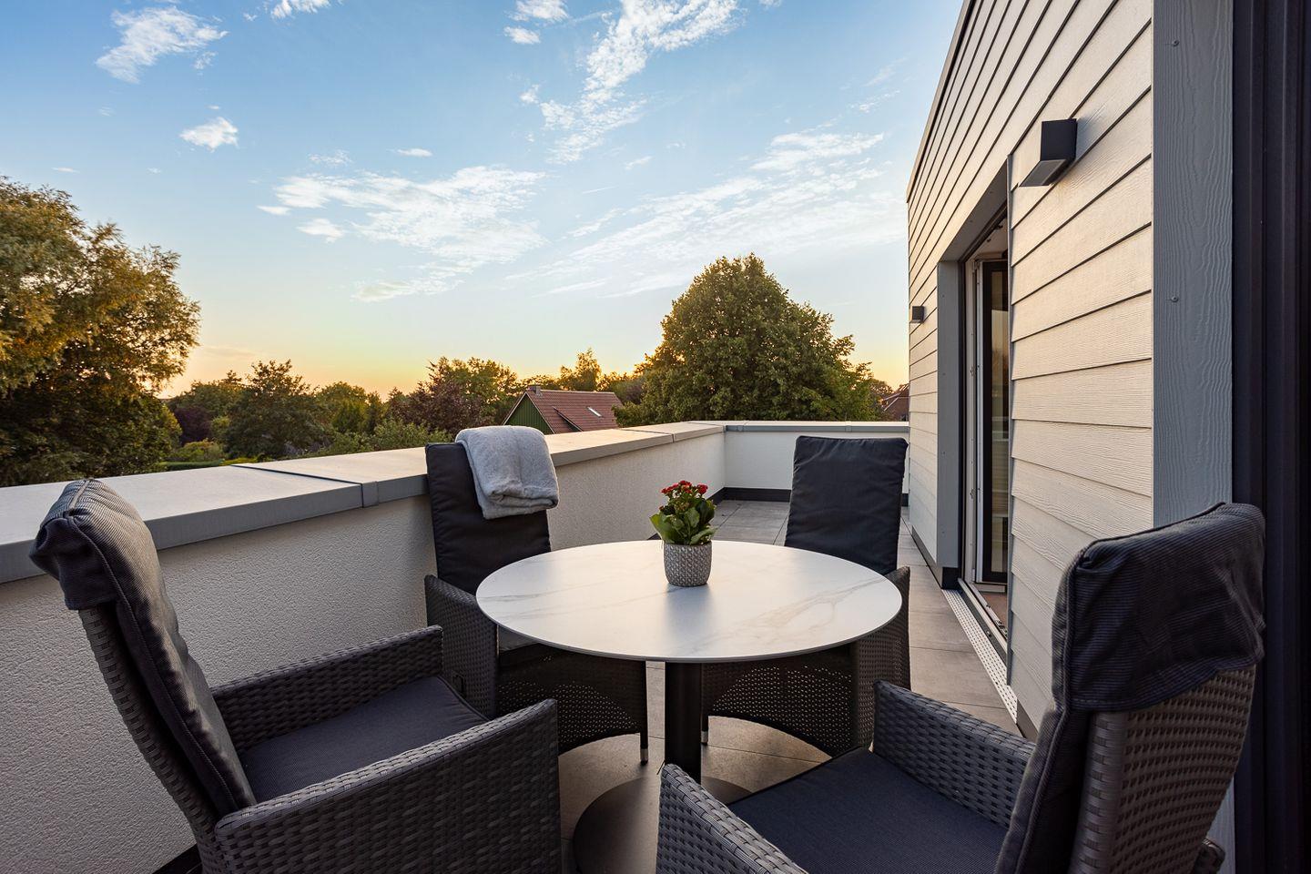 Modernes Penthouse in Dorum-Neufeld mit Balkon und traumhaftem Meerblick, ideal für Familien und Paare.