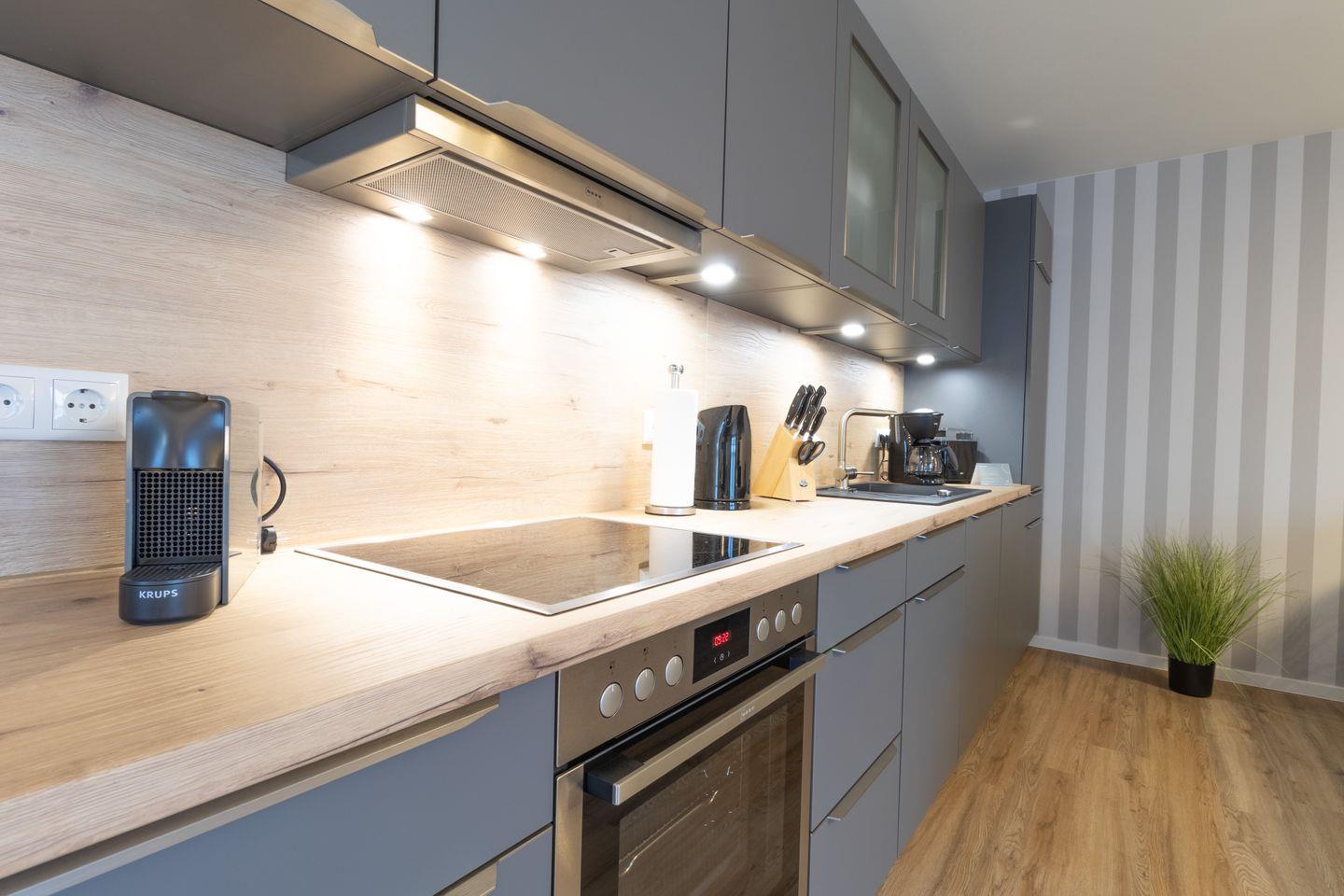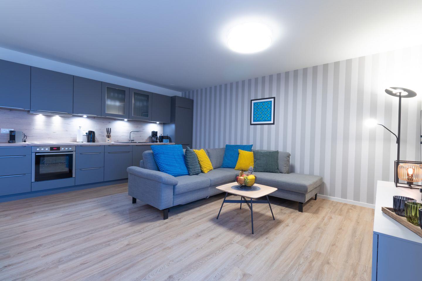 Der Aufzug bringt dich bequem in die 2. Etage. Fahrräder und Sportgeräte verstaust du sicher im abschließbaren Fahrradraum. Der Parkplatz direkt am Haus gehört exklusiv zur Wohnung. Ein kontaktloser Check-in per Schlüsseltresor sorgt für eine flexible und unkomplizierte Anreise.