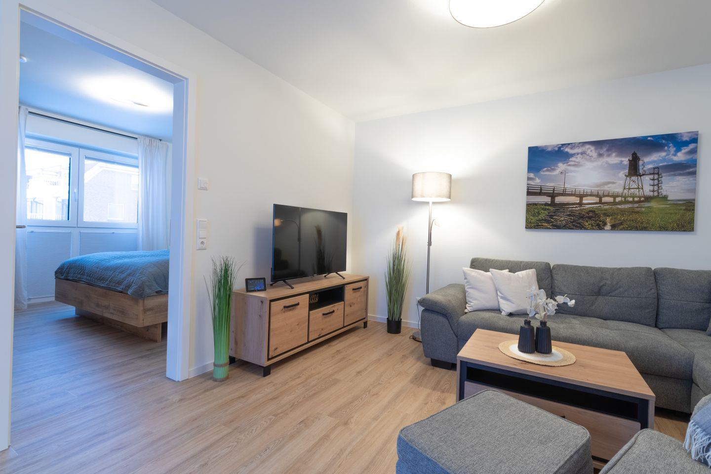Moderne Ferienwohnung Seebrise in Dorum-Neufeld mit Sauna, Balkon und Nähe zur Nordsee für entspannte Urlaubstage.