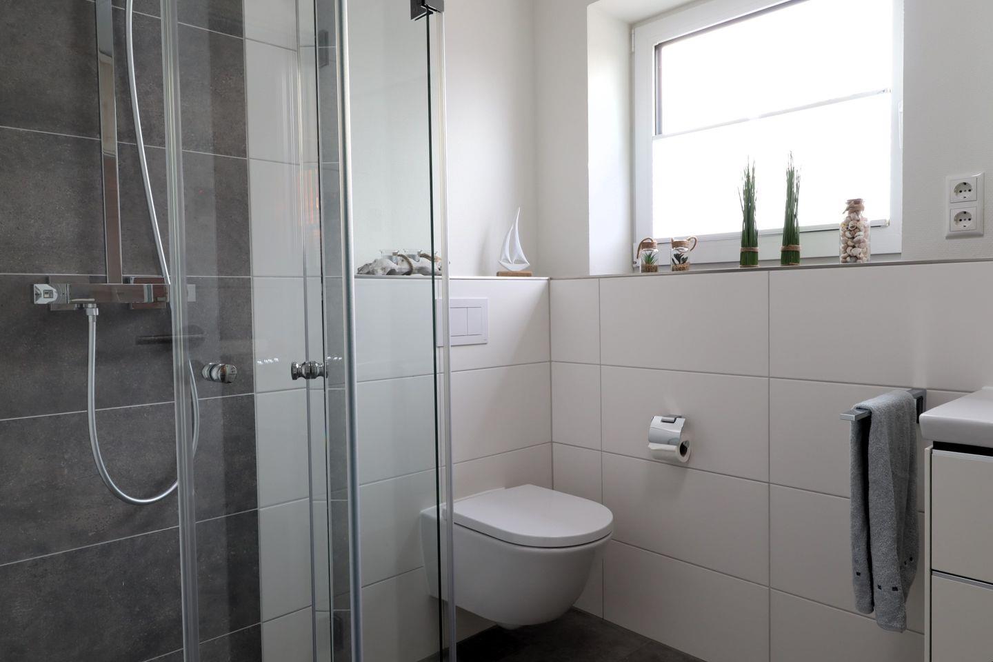 Das Badezimmer bietet eine bodengleiche Dusche und deine eigene Sauna. Nach einem Tag am Deich oder im Watt nutzt du die Sauna und entspannst in Ruhe, auch wenn das Wetter mal nicht so gut ist oder du in der kalten Jahreszeit Erholung suchst.