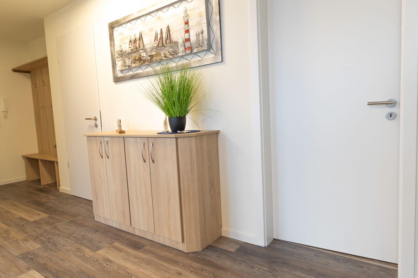 Für die kleinsten Gäste stehen ein Hochstuhl und ein Babyreisebett bereit. Die durchdachte Ausstattung macht Nordseeglück 16 zu einem idealen Feriendomizil für Familien mit Kindern.