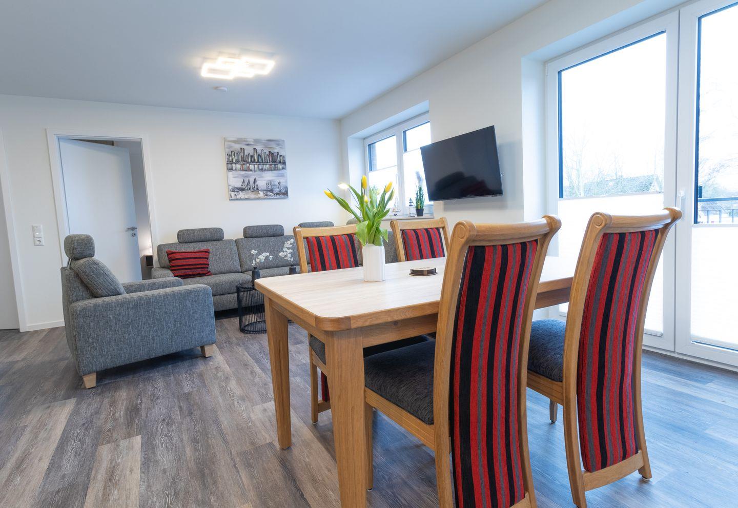 Im Nordseeglück 16 erlebst du modernes Urlaubsfeeling an der Nordsee. Die barrierefreie Wohnung in Dorum-Neufeld bietet auf 77?m² Wohnfläche alles, was du dir für entspannte Tage wünschst: großzügiger Wohnkomfort, private Sauna, zwei Schlafzimmer und ein großer Balkon – perfekt für Familien, Paare oder Freunde.