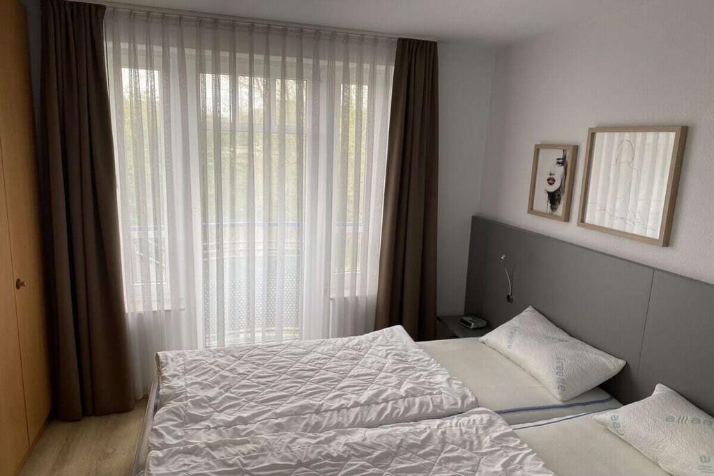 Moderne Ferienwohnung 101 im Vitamar Park mit Wellness, WLAN und großer Süd-Terrasse für erholsamen Urlaub.