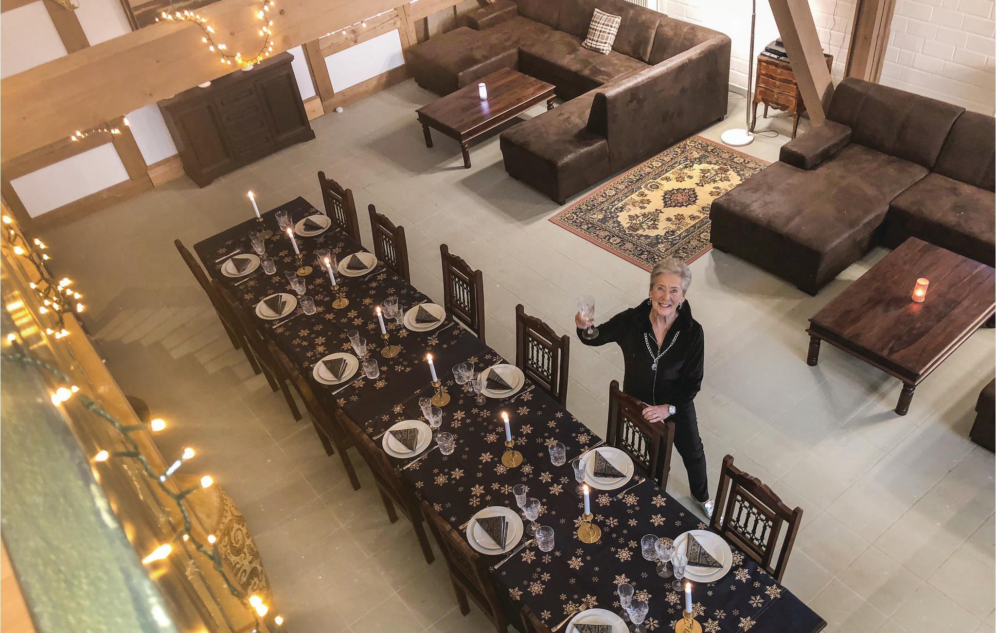 Die 10 Schlafzimmer erstrecken sich über insgesamt vier Etagen, einige verfügen über einen kombinierten Wohnraum. Im unteren Bereich befindet sich ein großer Raum für gemeinsame Aktivitäten oder Feierlichkeiten. Eine große Gemeinschaftsküche lädt ein, um gemeinsame Mahlzeiten zuzubereiten und dort auch gleich zu verspeisen. Ein separater Raum bietet Tischfußball und Billard, auch ein kleines Heimkino steht Ihnen zur Verfügung. Für Wellness sorgen im Außenbereich eine Sauna und eine Badetonne. Das Holz für den Saunaofen muss je nach Bedarf selbst mitgebracht werden.