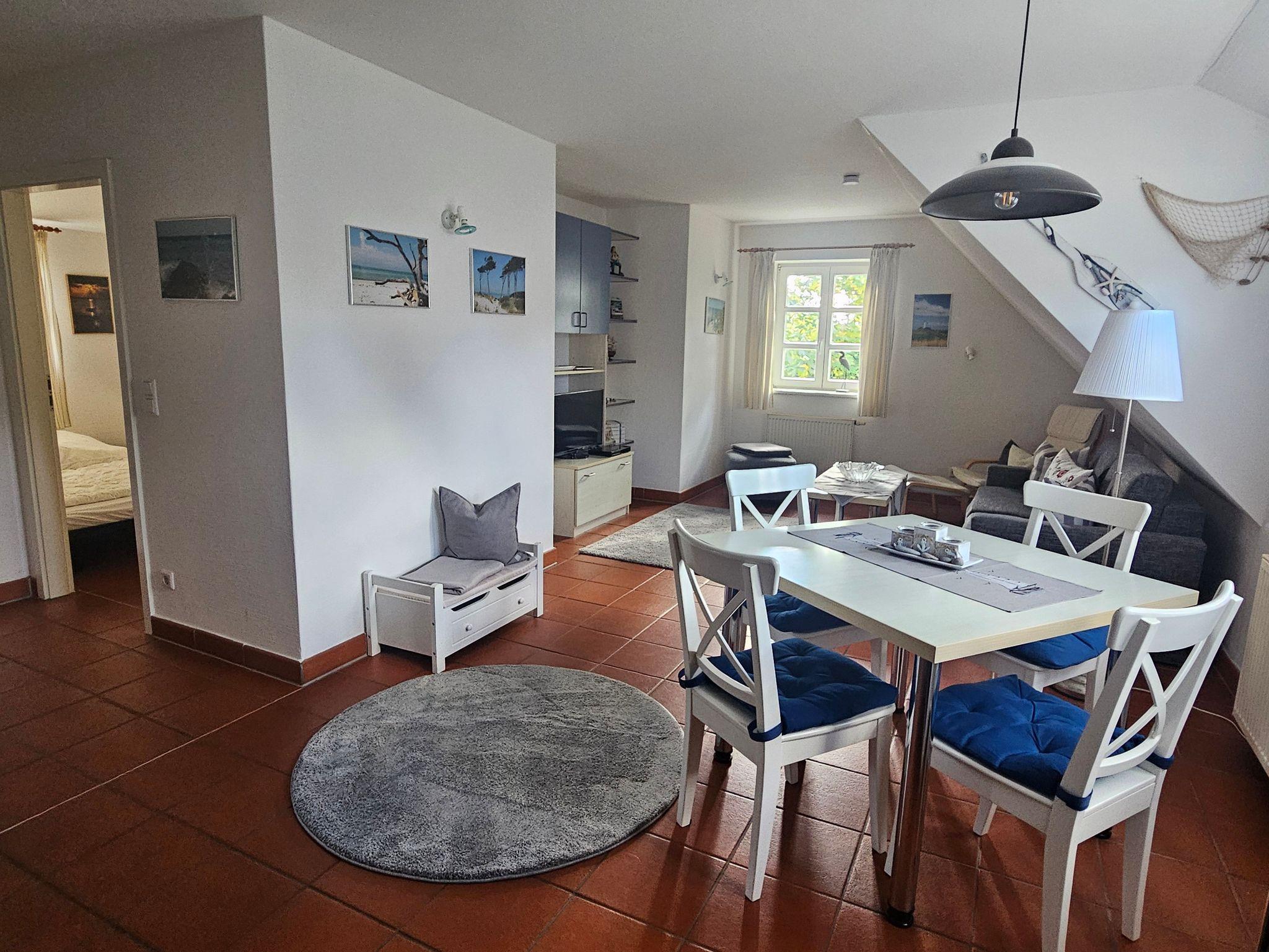 Unsere liebevoll eingerichtete Ferienwohnung in Traumlage, 350 m zum Strand, liegt in einem großzügig angelegten Feriendorf auf dem Bakenberg bei Dranske nur durch einen schmalen Küstenwald vom Meer entfernt.