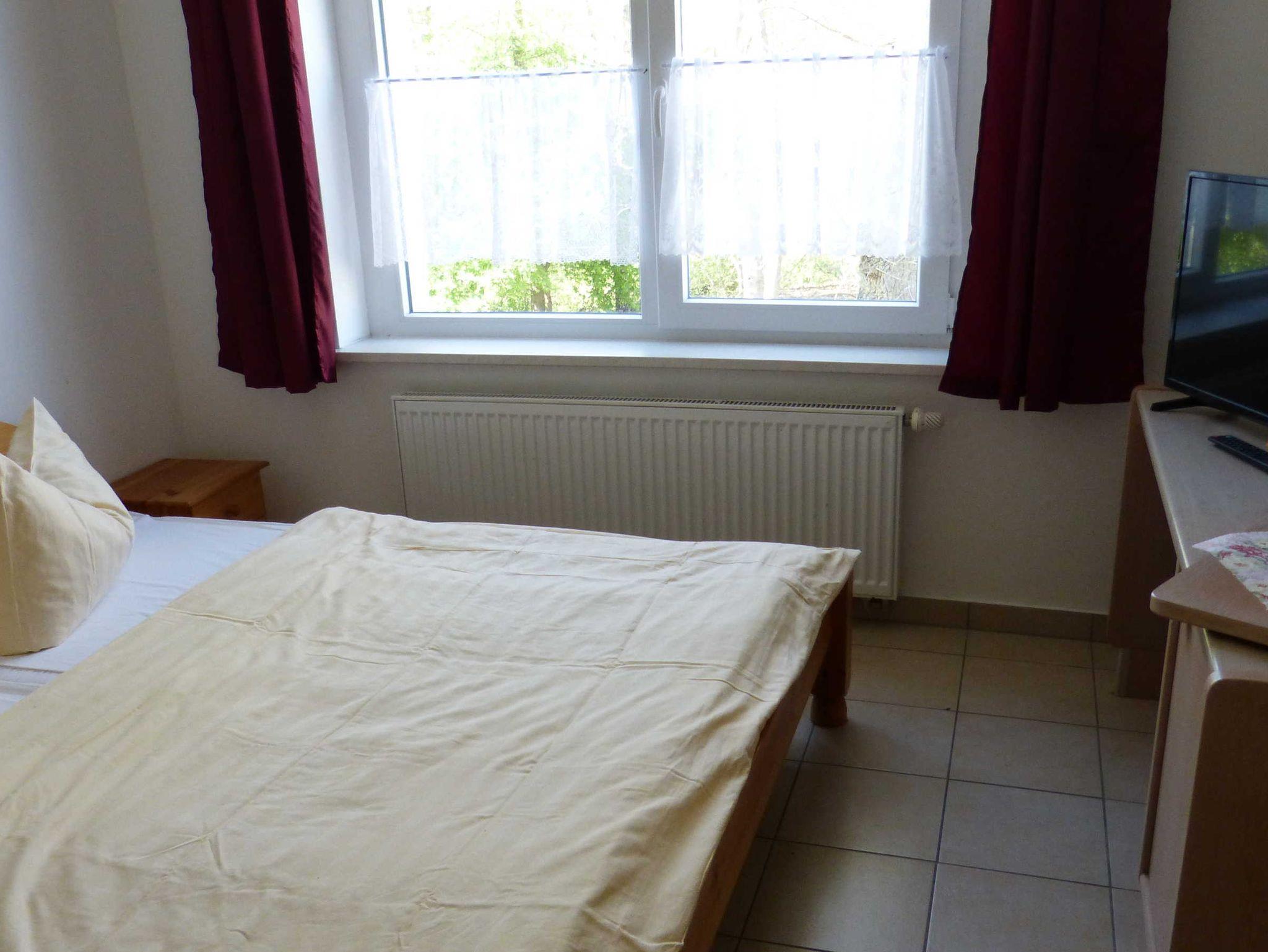 Die Ferienwohnung liegt im 1. Obergeschoß, hat eine Größe von 26 m² und verfügt über einen Wohnraum mit Pantry, ein Schlafzimmer mit einem Doppel- und einem 3-er Etagenbett und ein Badezimmer. Die Terrasse vor dem Haus kann gemeinschaftlich genutzt werden. In der Miniküche befinden sich zwei Kochplatten, eine Kaffemaschine, ein Wasserkocher, ein Toaster, ein Kühlschrank mit Gefrierfach sowie eine Mikrowelle. Wäsche kann zugebucht werden ((Handtuch- Bettwäschepaket 25,00 pro Person). Im Ferienpark kann ein Grill gemietet werden, ebenso ist die Nutzung einer gemeinschaftlichen Waschmaschine möglich (gegen Gebühr).