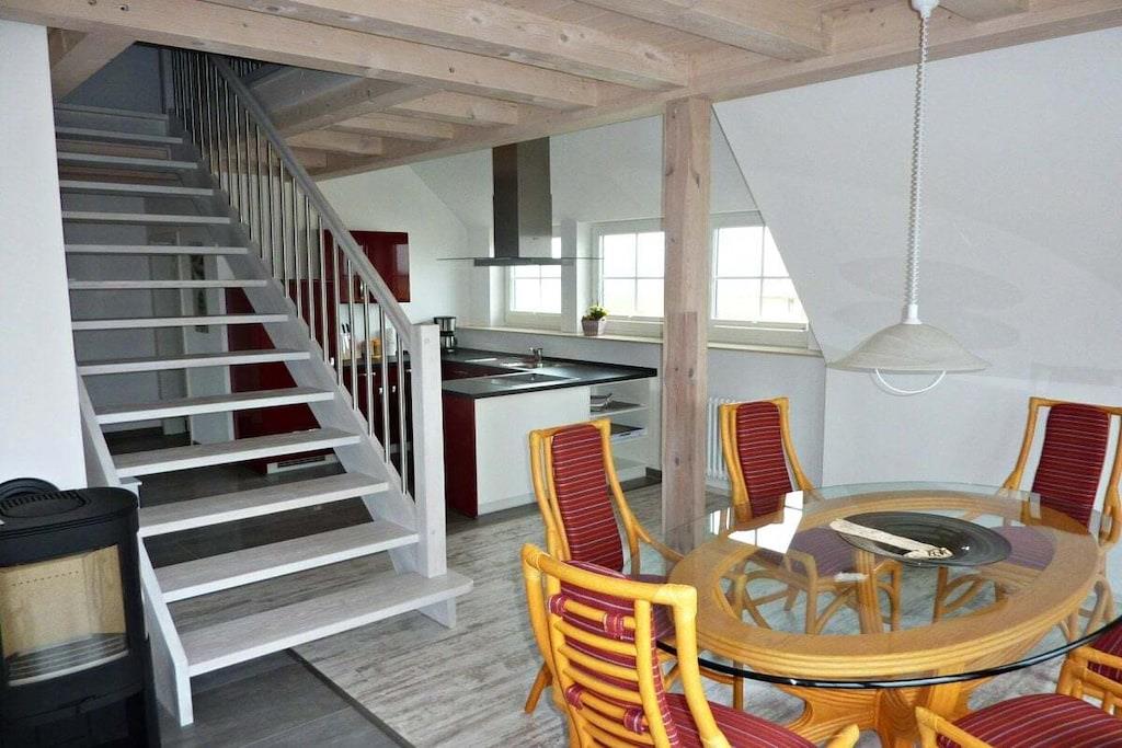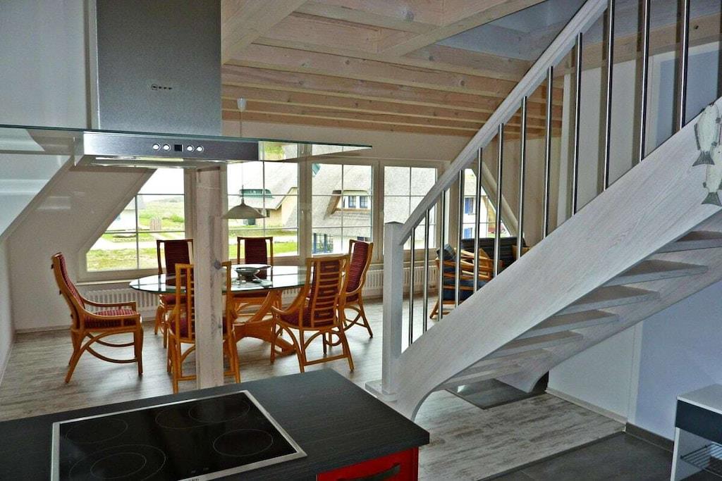 Das Ferienhaus Meeresbrandung wurde als Haus mit zwei getrennten Wohneinheiten konzipiert. Seeanemone im OG + DG; Seeigel im EG. Sie bieten allen erdenklichen Komfort wie Kamin, Einbauküche mit Geschirrspüler, Fußbodenheizungen in den Bädern, Essplatz und moderne Couchecke, LCD-TV, Gartenmöbel, Fahrräder, Grill und vielem weiteren. Kostenfreies WLAN ist selbstverständlich.