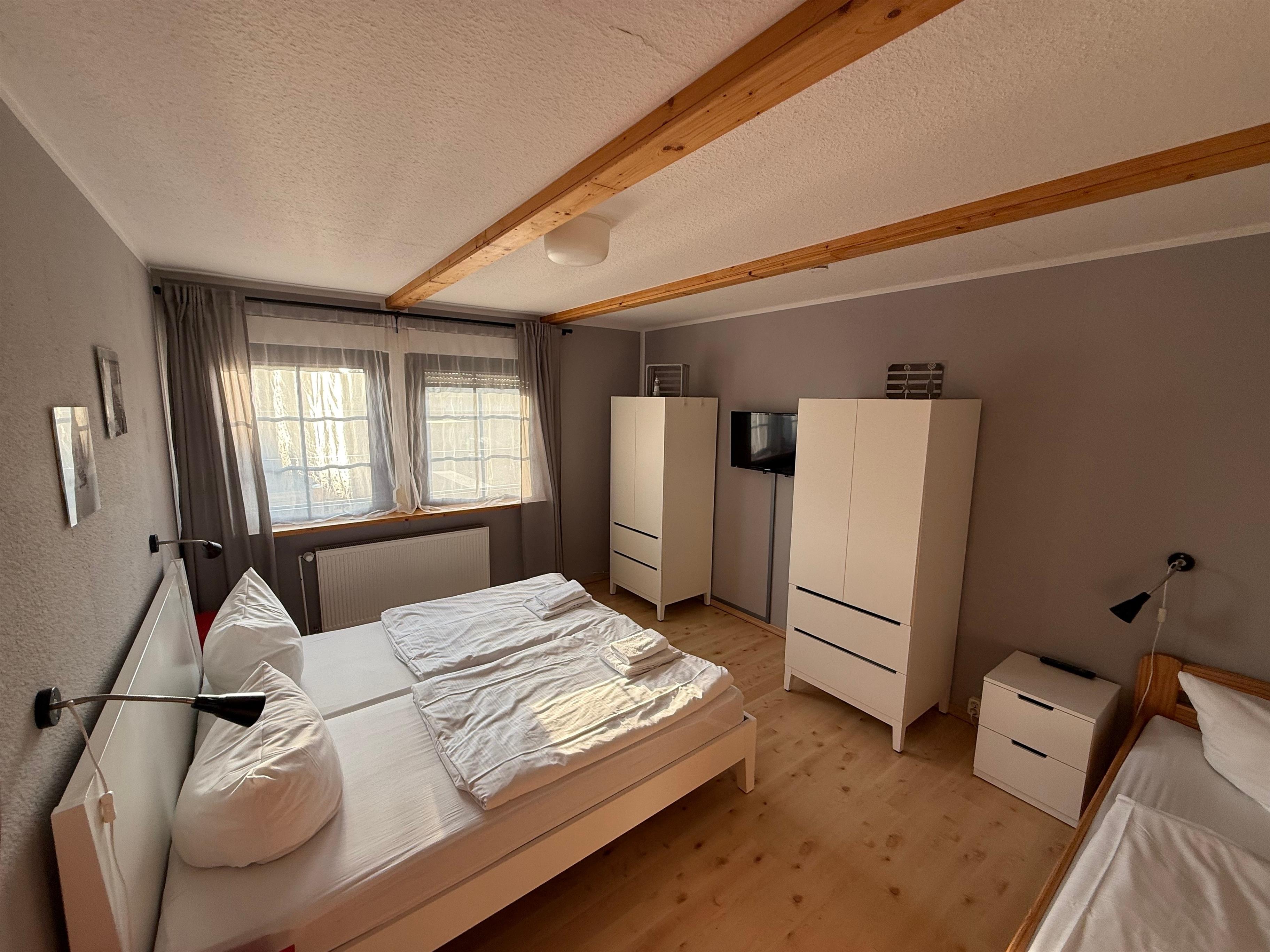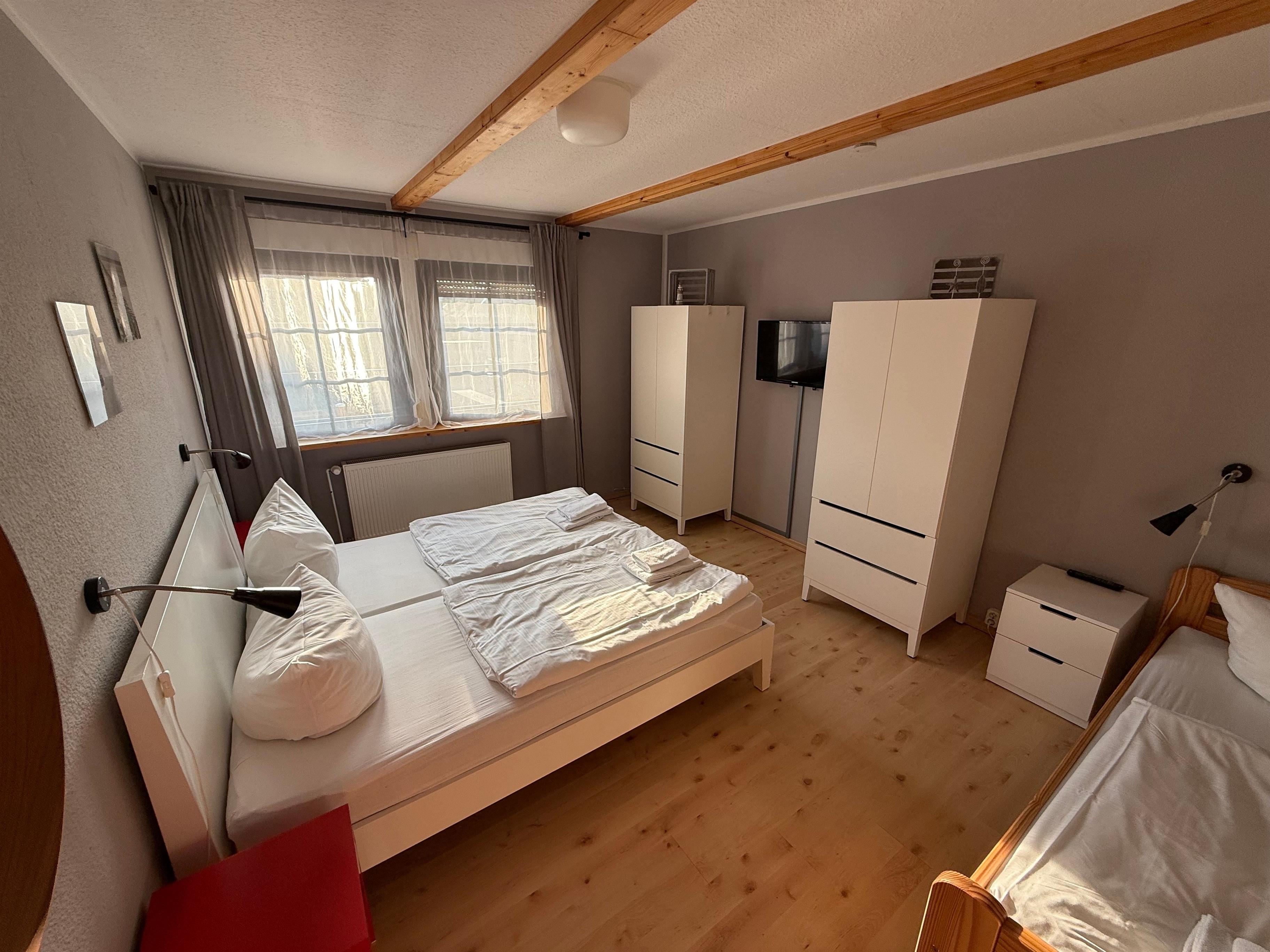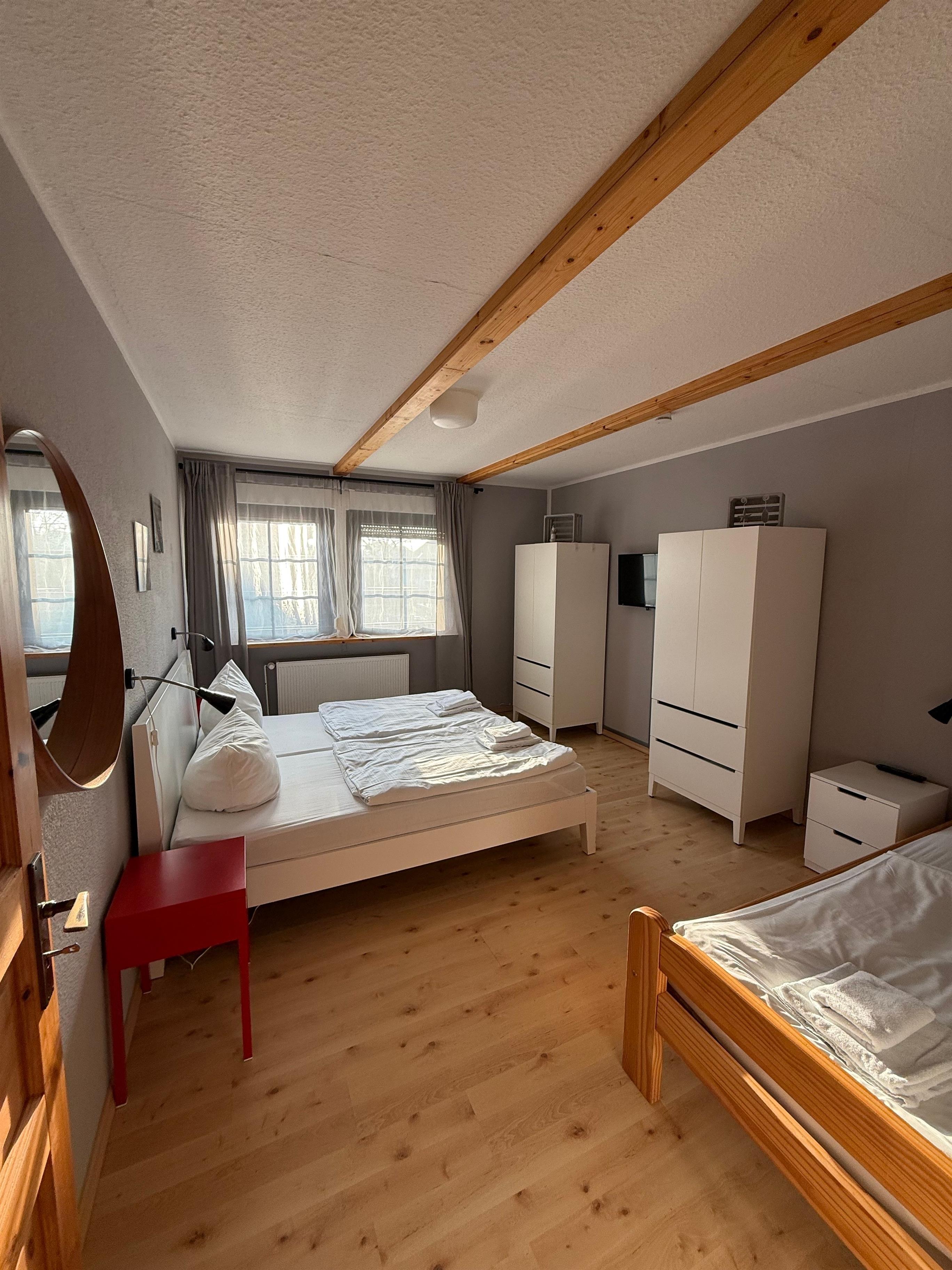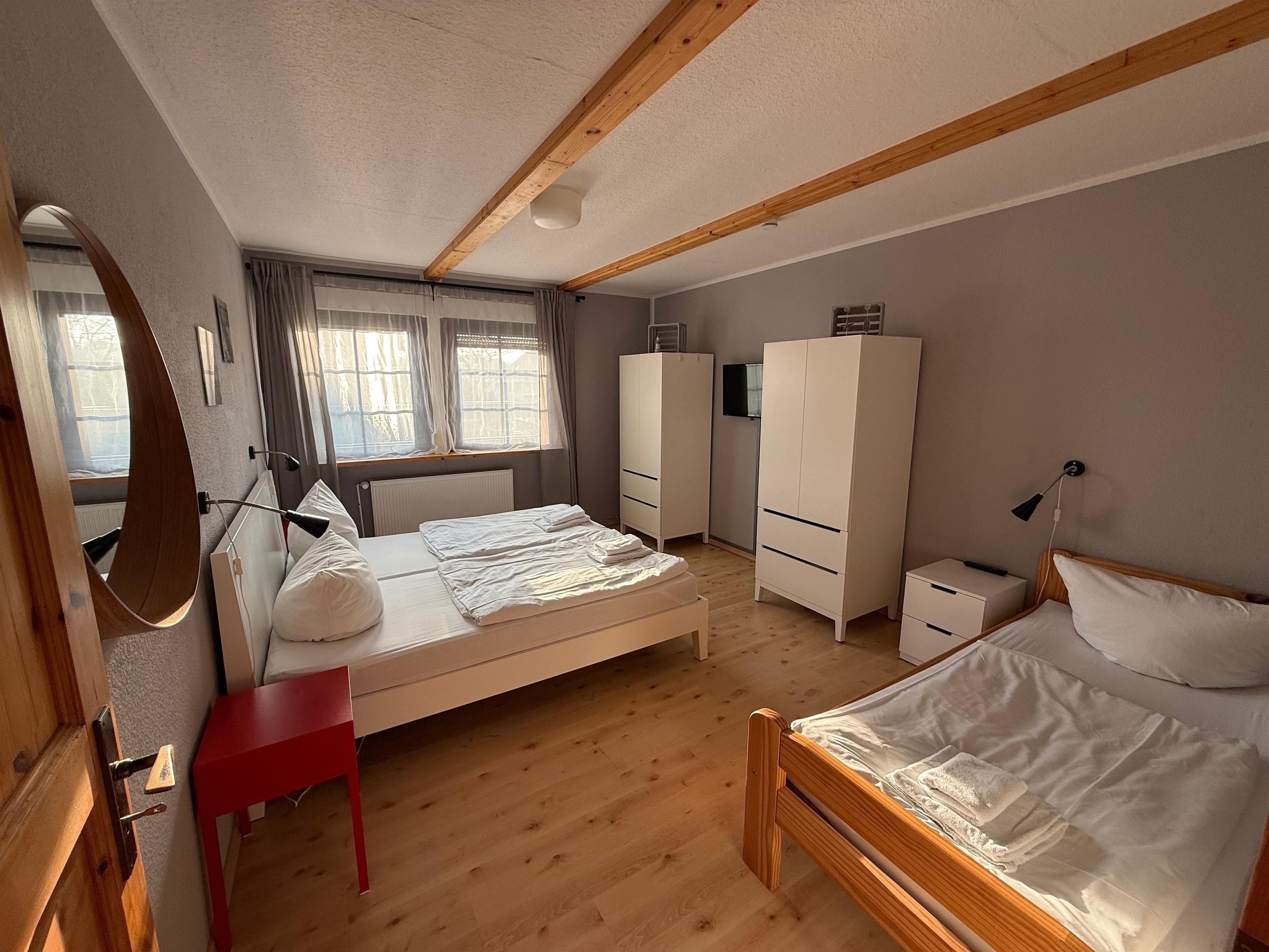 Es kann ggf auch die obere Wohnung mitgebracht werden und nutzt das Haus komplett.