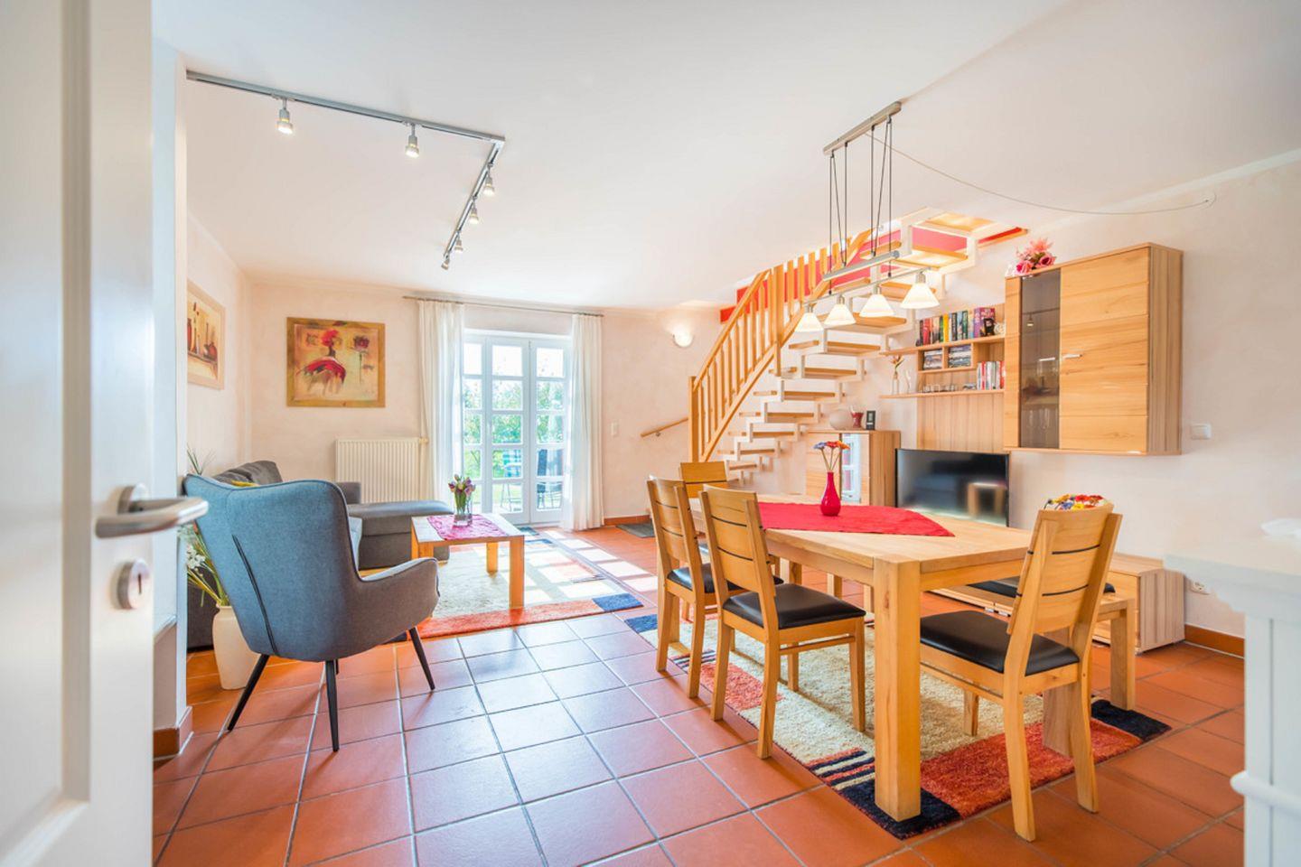 ALLGEMEINE ECKDATEN // 3-Raum-Ferienwohnung für bis zu 5 Personen und ein Kleinkind auf 2 Etagen, 75 m², Terrasse, Hund willkommen ++