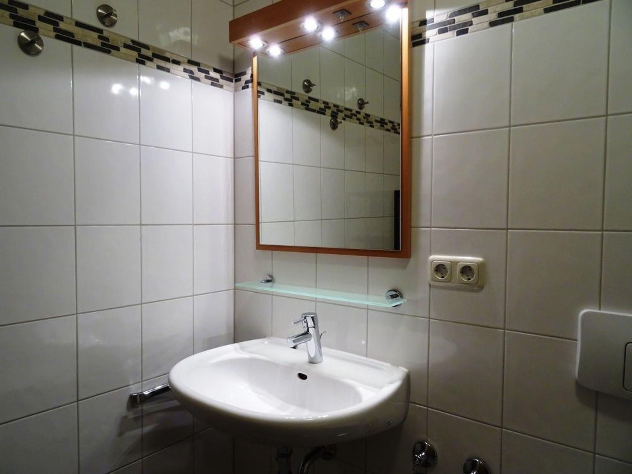 Das Schlafzimmer ist mit einem Doppelbett 160 cm x 200 cm und Kleiderschrank möbliert. Das Bad ist vollständig gefliest und mit einer Badewanne/Dusche, Waschbecken und WC versehen. Ein separater Abstellraum/Garderobe in der Wohnung bietet zusätzlichen Stauraum (z.B. für Gepäcktaschen). Im Wohn- und Schlafbereich ist Laminat verlegt. Küche, Bad, Flur und Garderobe/Abstellraum sind mit Granitbodenfliesen versehen.