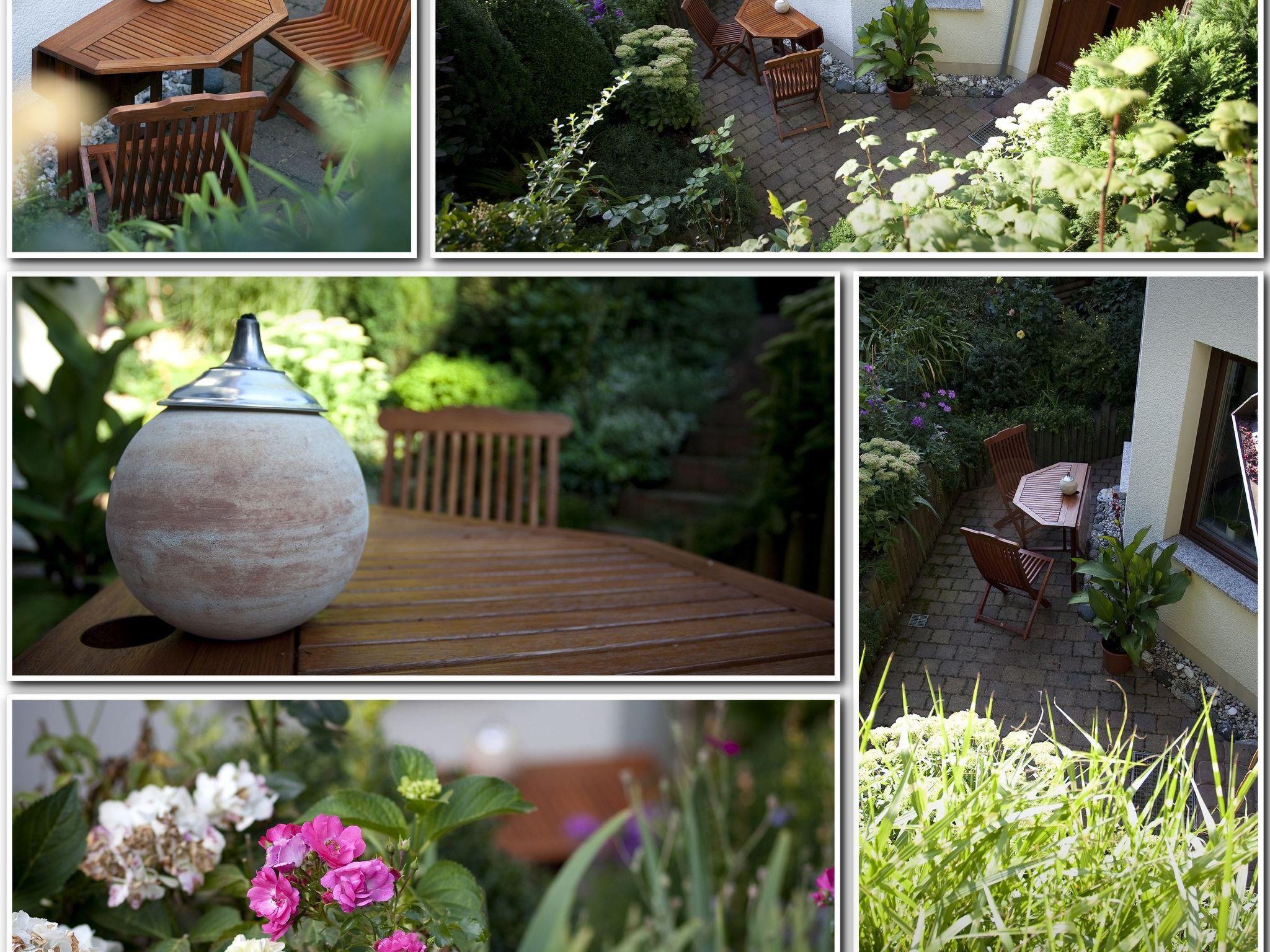 Der Außenbereich besticht durch eine idyllische, sonnige Terrasse, die geradezu dazu einlädt, bei einem Glas Wein oder einer Tasse Kaffee die Ruhe zu genießen. Komfortable Gartenmöbel stehen bereit, um Ihnen Ihre Momente im Freien so angenehm wie möglich zu machen. Eine überdachte Raucherinsel im Garten garantiert auch Rauchern ein ungestörtes Verweilen, allerdings mit gebührendem Abstand zur Wohnräumlichkeit.