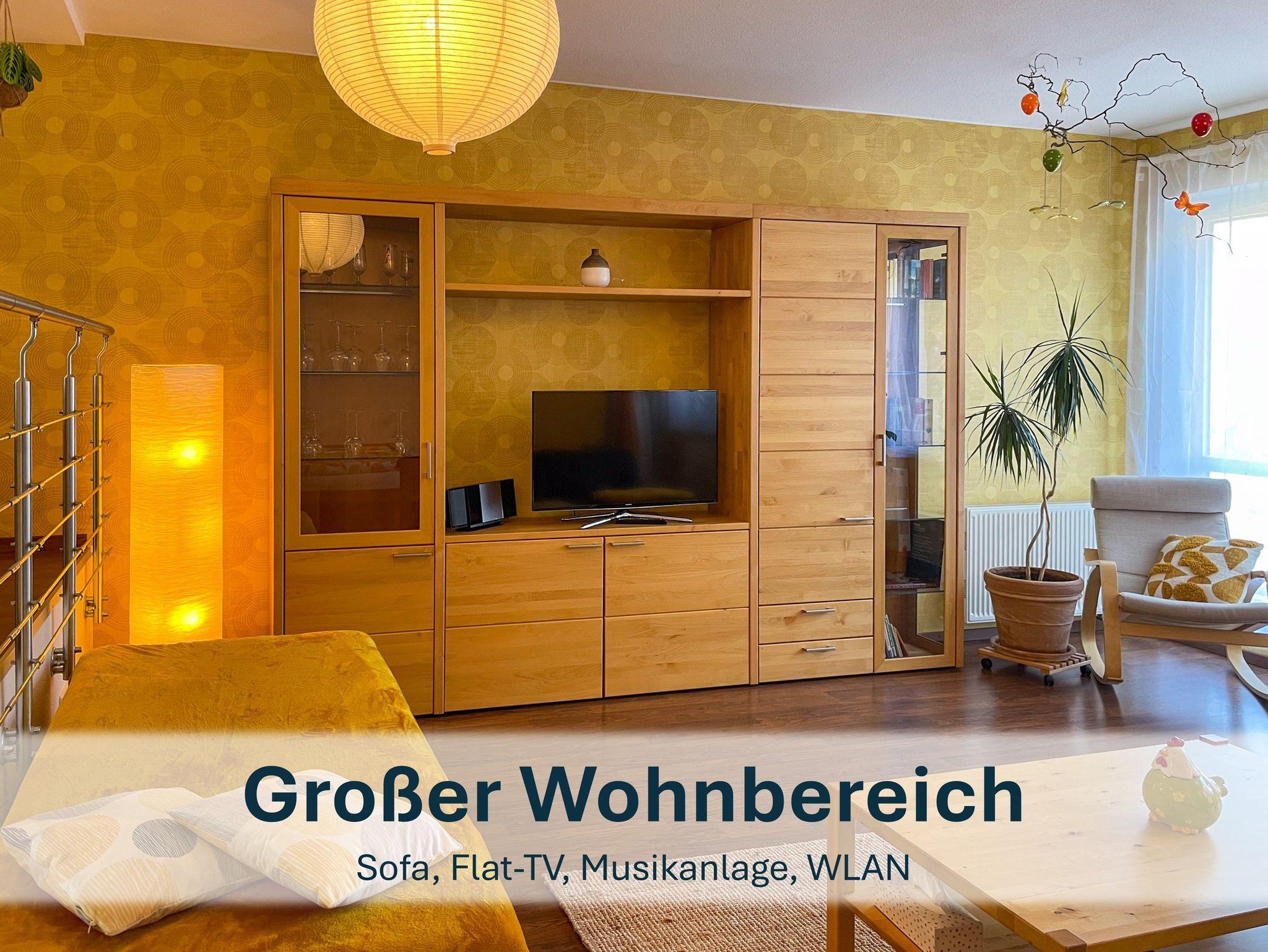 Im Wohnbereich können Sie es sich auf der Couch gemütlichen machen oder abends zusammensitzen.