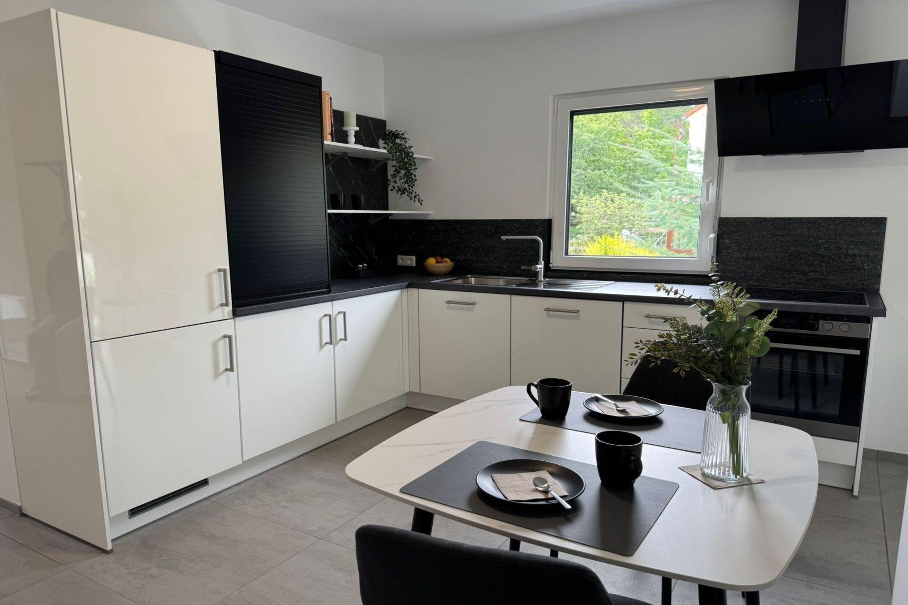 Der offen gestaltete Wohn- und Essbereich bildet das Herzstück der Wohnung. Die voll ausgestattete, hochwertige Küche verfügt über einen Backofen mit Cerankochfeld, Kühlschrank, Geschirrspüler, Kaffeemaschine, Wasserkocher und Toaster – ideal für Selbstversorger oder Genießer eines gemütlichen Frühstücks.