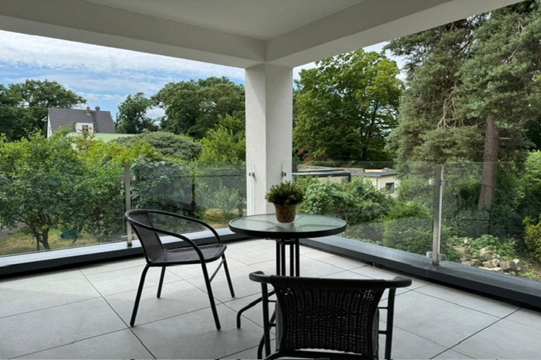 Der große, private Balkon lädt zum Verweilen ein – ob bei einem Frühstück an der frischen Luft oder einem Glas Wein am Abend.
