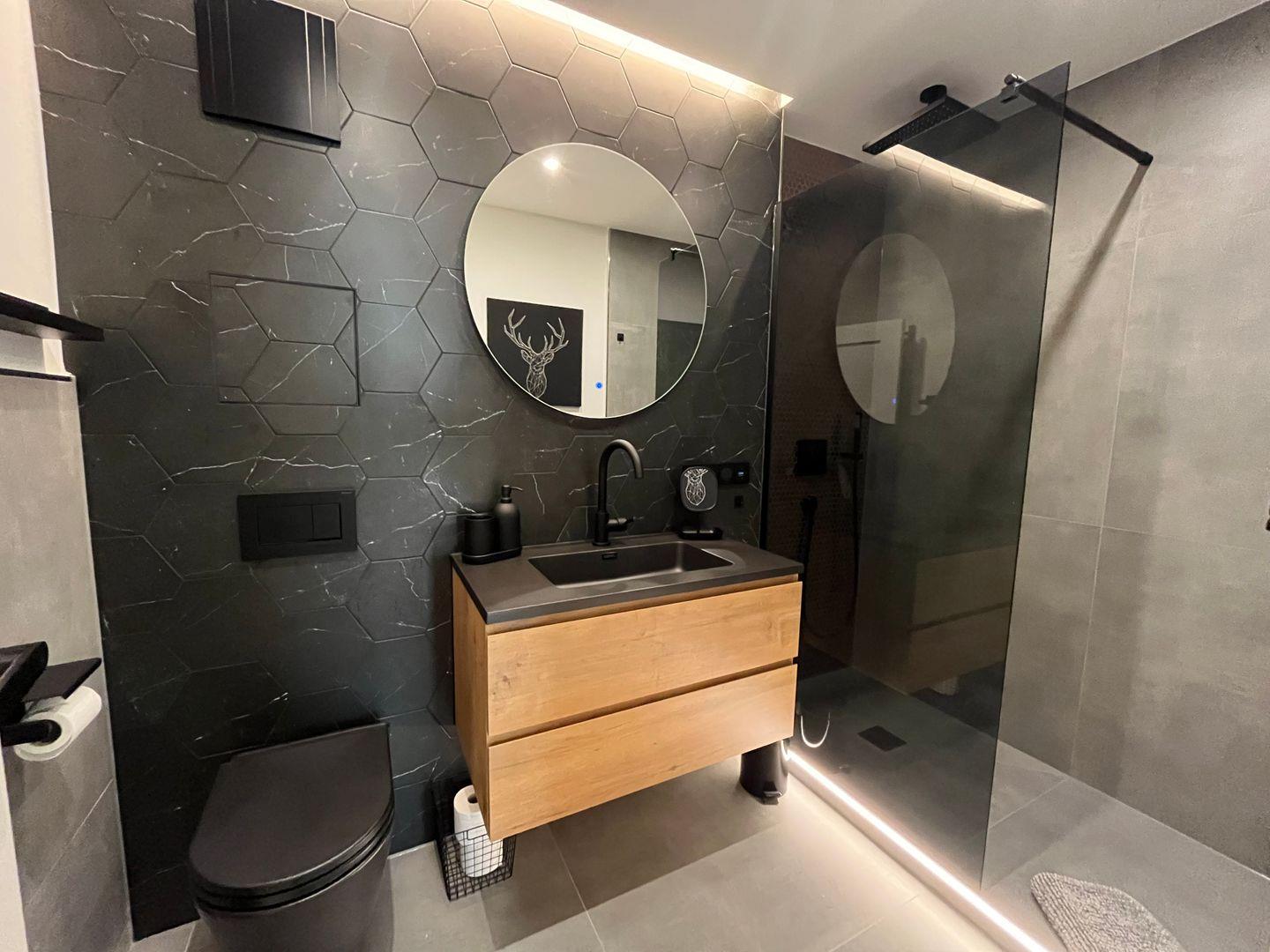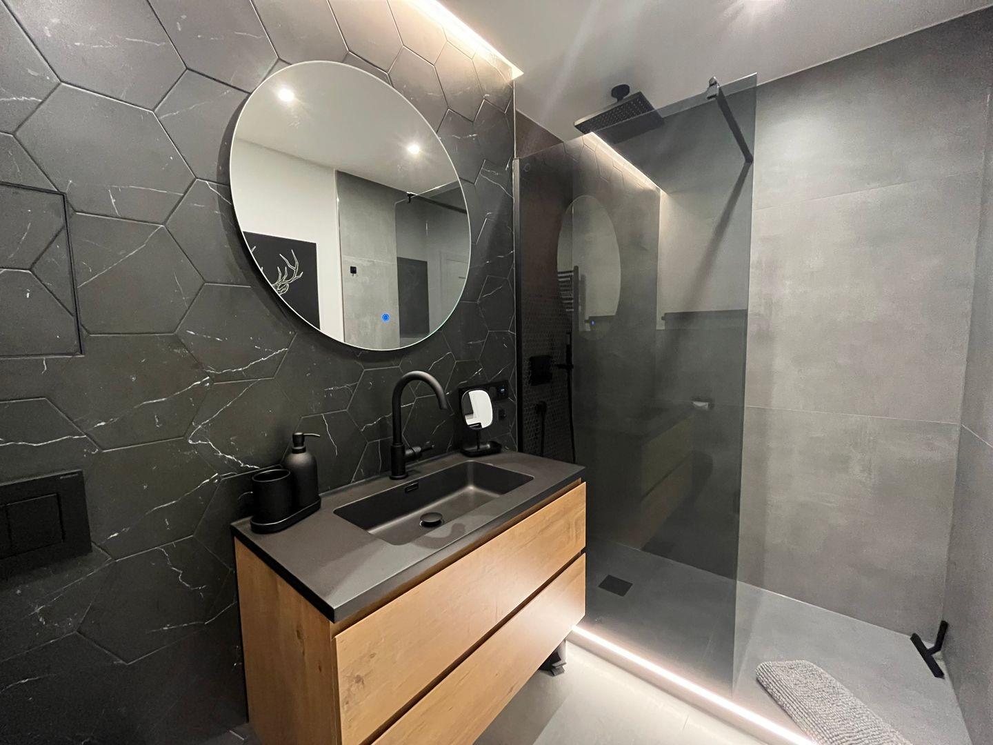 Das Badezimmer ist modern und komfortabel gestaltet und mit nützlichen Badeutensilien wie Seife und Shampoo ausgestattet. Praktische Annehmlichkeiten wie ein Haartrockner und die Nutzung der Waschmaschine runden das Angebot ab.