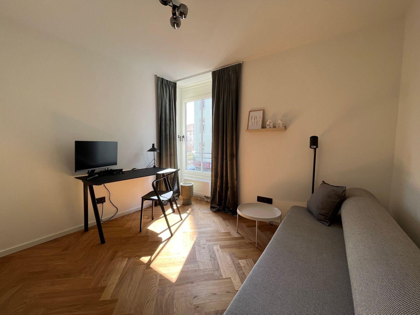 Die Wohnung ist sorgsam auf Ihre Bedürfnisse abgestimmt und bietet Ihnen mit WLAN, einem Tablet PC und einem Schreibtisch die besten Voraussetzungen für einen ruhigen und produktiven Aufenthalt, sei es für Erholung oder Arbeit. Darüber hinaus sorgt der Sichtschutz an allen Fenstern für maximale Privatsphäre.