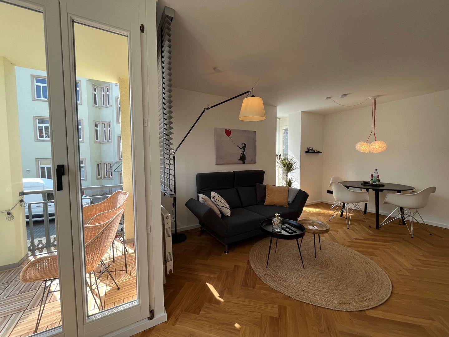 Entfliehe dem Alltag in der einzigartigen Ferienwohnung "Wohnperle Elboase" in Dresden! Diese moderne Unterkunft bietet auf 65 m² Platz für bis zu drei Personen und verfügt über zwei gemütliche Schlafzimmer sowie ein einladendes Wohnzimmer mit einer Sofaecke. Der überdachte Balkon lädt zum Entspannen ein, während die voll ausgestattete Küche und WLAN für deinen Komfort sorgen. Ein Privatparkplatz steht zur Verfügung. Erlebe Ruhe und Gemütlichkeit – buche jetzt dein Zuhause auf Zeit!