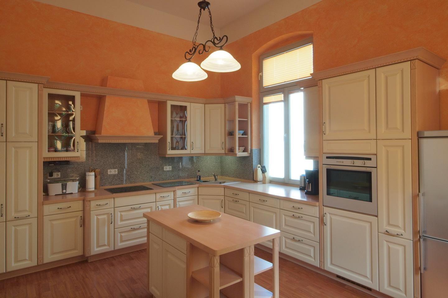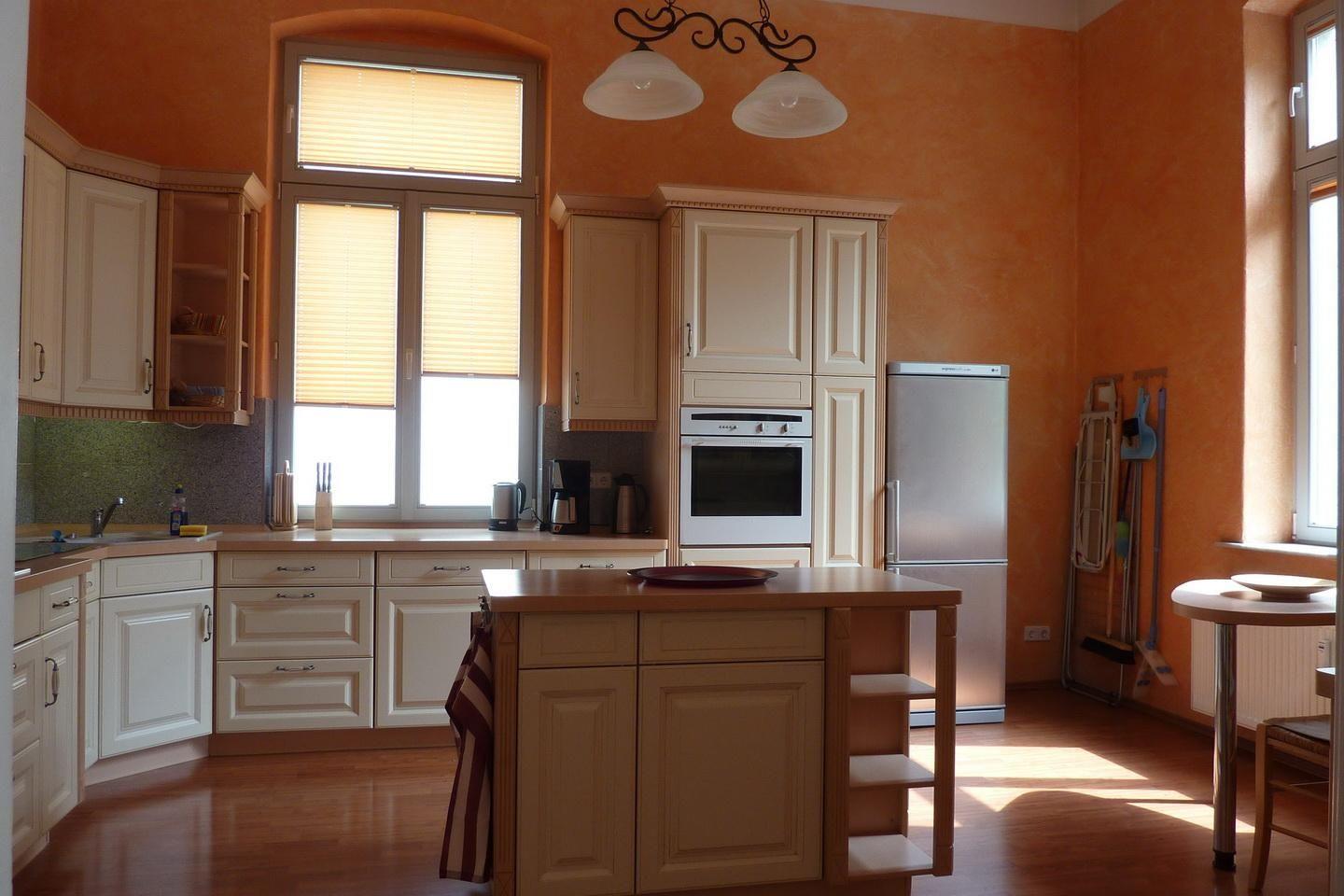 Treten Sie ein in die Belle Étage. Herrschaftliches Wohnen auf 148 qm! 4-Raum Wohnung im Obergeschoss bis 6 Personen, ruhig und zentral nähe Hauptbahnhof gelegen. 2 Schlafzimmer mit Doppelbett, 1 Schlafzimmer mit 2 Einzelbetten. Vorsaal mit Garderobe, großer, heller Wohnraum mit Esstisch, Couchgruppe und einer riesigen, nach Südwesten ausgerichteten Terrasse. Große moderne Küche, 3 Schlafräume (2 x Doppelbett, 1 x 2 Einzelbetten), großes Fensterbad mit Dusche, Wanne, Waschtisch, WC, separates Gäste-WC, TV, WiFi. Parkplätze und/oder Garagen können bei Bedarf gegen Gebühr mitgemietet werden. Zur gemeinschaftlichen Nutzung stehen den Gästen eine Fahrradgarage mit E-Bike-Ladestation, Waschmaschine und Trockenraum zur Verfügung. Auch der Garten lädt zum Verweilen ein.
