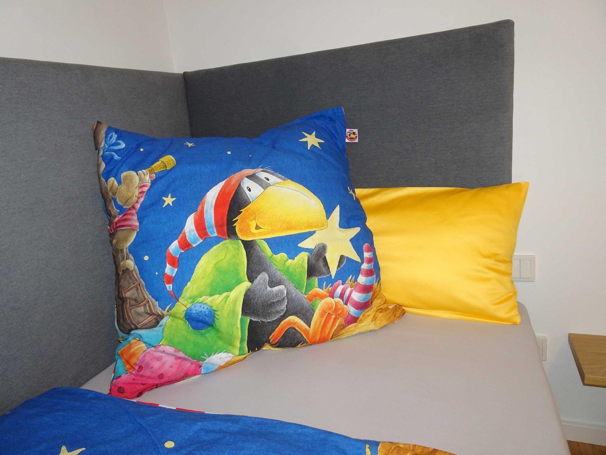 Bettwäsche mit Kindermotiven, Puzzle, Bücher etc. bereiten eine Wohlfühlatmosphäre für unsere kleinen Gäste.
