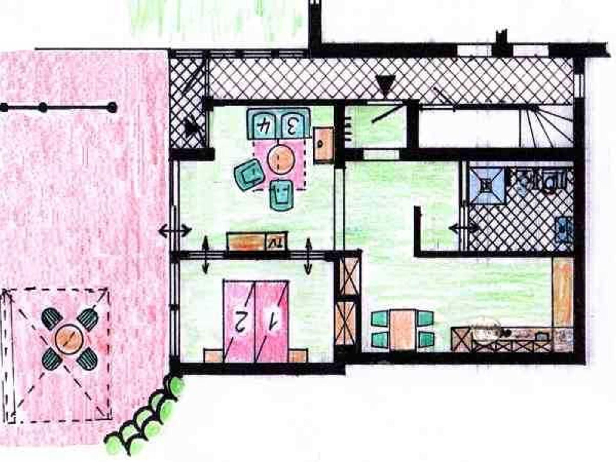Für unsere Rollstuhl fahrenden Gäste, steht ein Elektro-Rollstuhl gegen Gebühr zur Verfügung. ( Bitte anmelden.) Große Terasse mit Pavillion, Schlafzimmer, großes Bad mit Dusche/WC, Wohnzimmer, Küche mit Essecke. Neben dem Kühlschrank steht auch eine Tiefkühlmöglichkeit zur Verfügung.