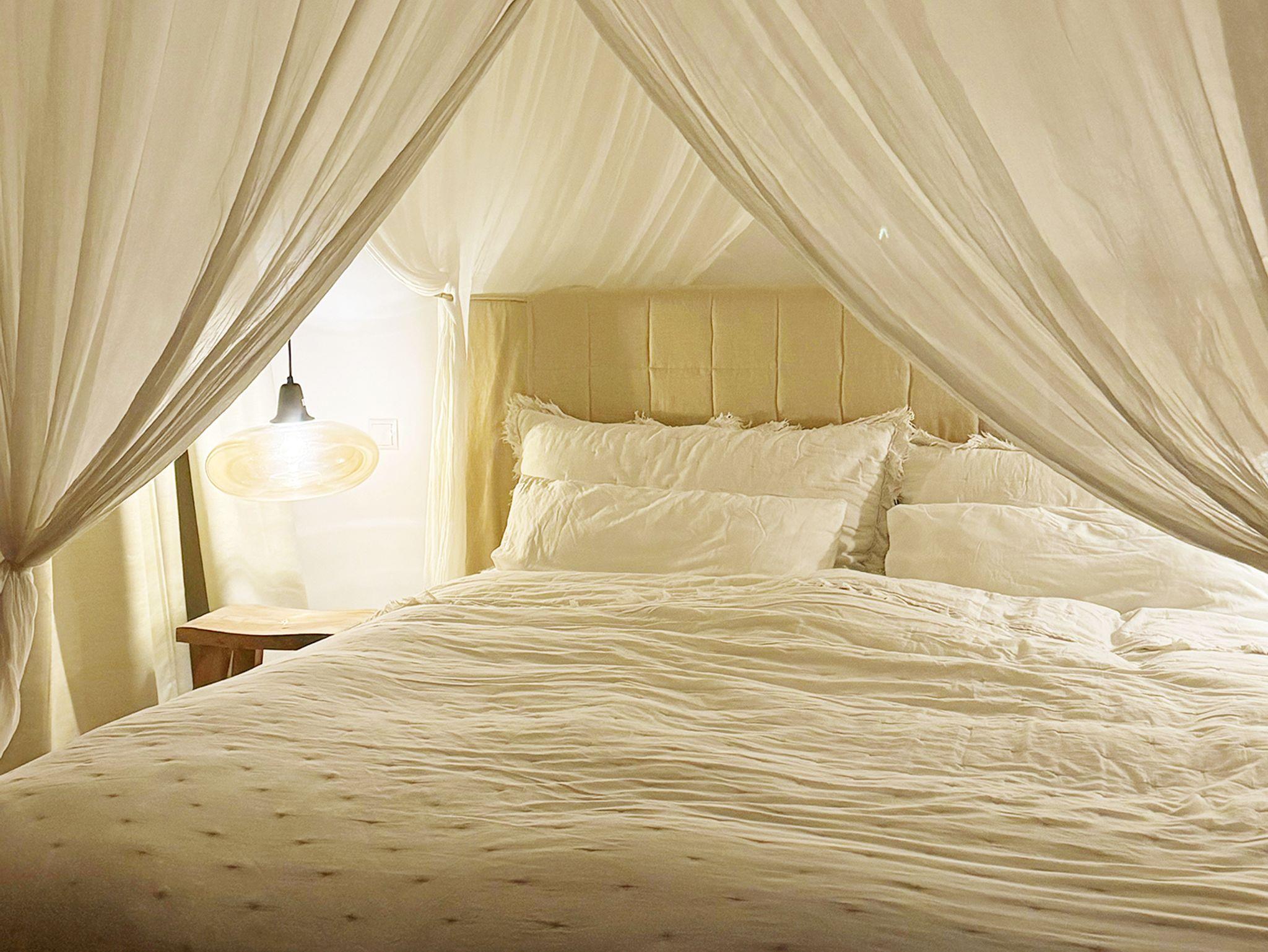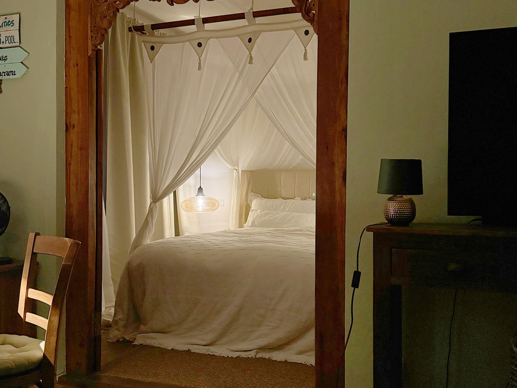 Und endlich seid ihr so müde, dass sich das Balitor zum großen Himmelbett öffnet. Die erste von hoffentlich vielen guten Nächten im siebten Betthimmel - und wie ruhig es hier nachts ist! Insektengitter halten euch lästige Tierchen auf Abstand.