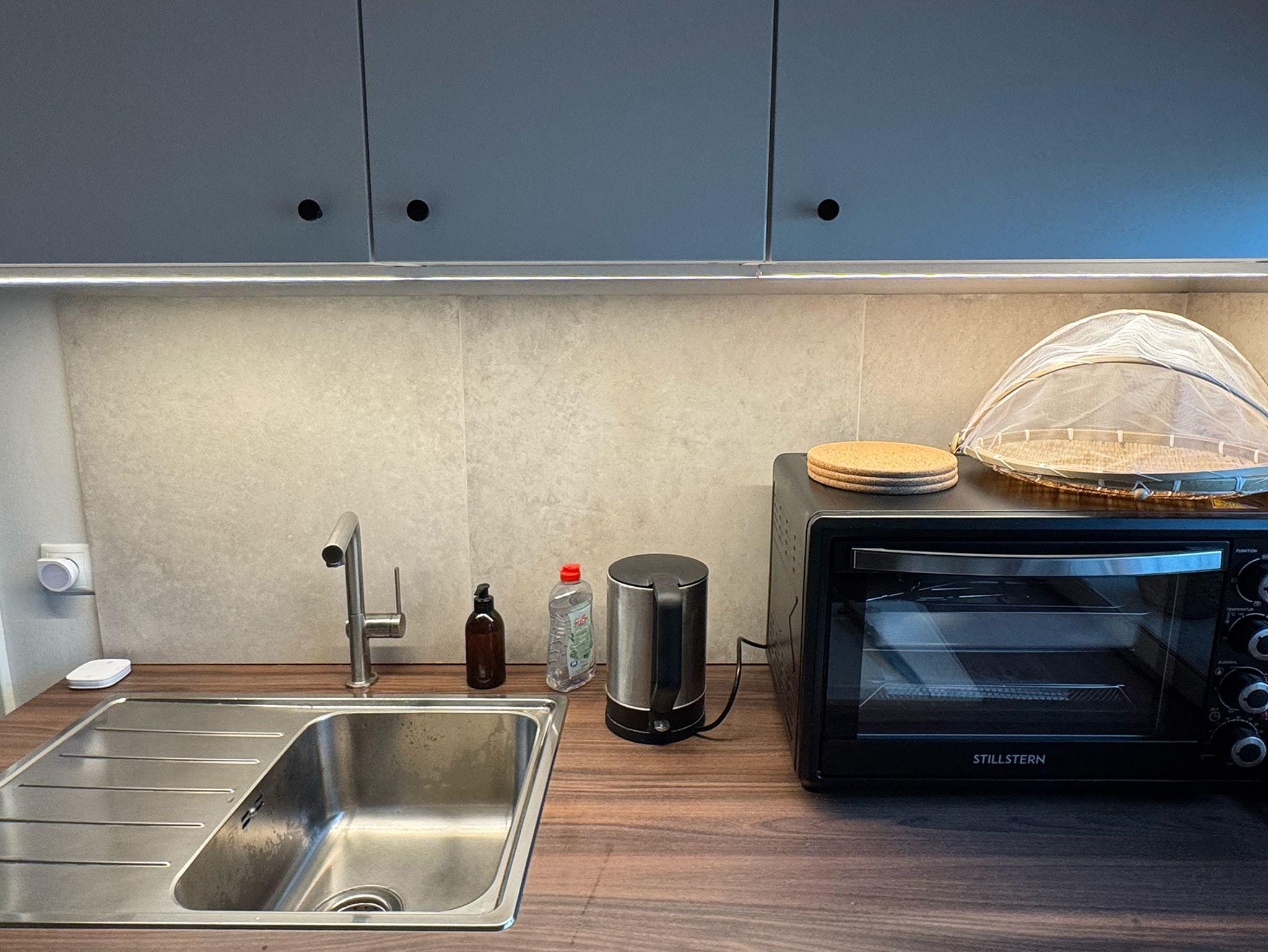 Wenn ihr nicht in einem der guten Restaurants in Eggstätt Essen gehen möchtet, könnt ihr euch in der kleinen, aber feinen Küche ein leckeres Essen zubereiten - Pizza geht immer!