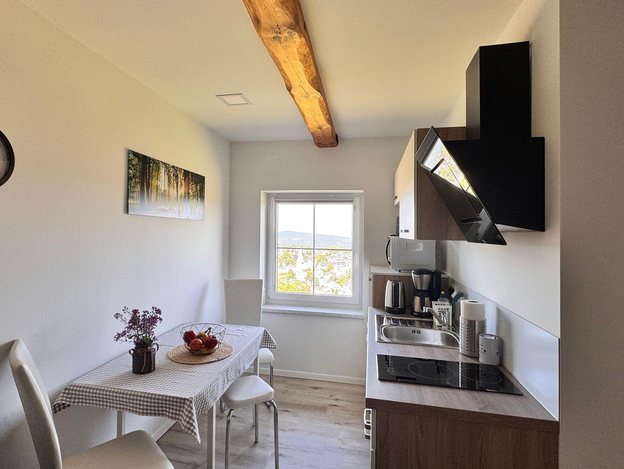 Die Ferienwohnung Hase bietet auf 39 Quadratmetern Platz für bis zu 4 Personen. Sie verfügt über ein Schlafzimmer mit einem Doppelbett und einem Etagenbett, welche durch eine Trennwand mit seitlichem Durchgang voneinander abgegrenzt sind. Der offene Wohnbereich verfügt zudem über TV, DAB-Radio mit Bluetooth und einen Kamin. Die Einbauküche ist mit Kühlschrank, Tiefkühlfach, Geschirrspülmaschine, Dunstabzugshaube, 2-Felder-Ceranfeld, Mikrowellenbackofenkombination, Dunstabzugshaube, Kaffeemaschine, Toaster, Wasserkocher, Eierkocher, Brotschneidemaschine voll ausgestattet. Das Tageslichtbad verfügt über Dusche, WC, Waschbecken und einen Handtuchheizkörper. Die gesamte Wohnung wird zentral über eine Fußbodenheizung beheizt. Die Bettwäsche und Handtücher sind inklusive. WLAN und Parkplatz sind kostenfrei vorhanden. Es gibt auch eine kostenfreie Abstellmöglichkeit für Ski, Fahrräder & Co. Es handelt sich um eine Nichtraucherwohnung.
