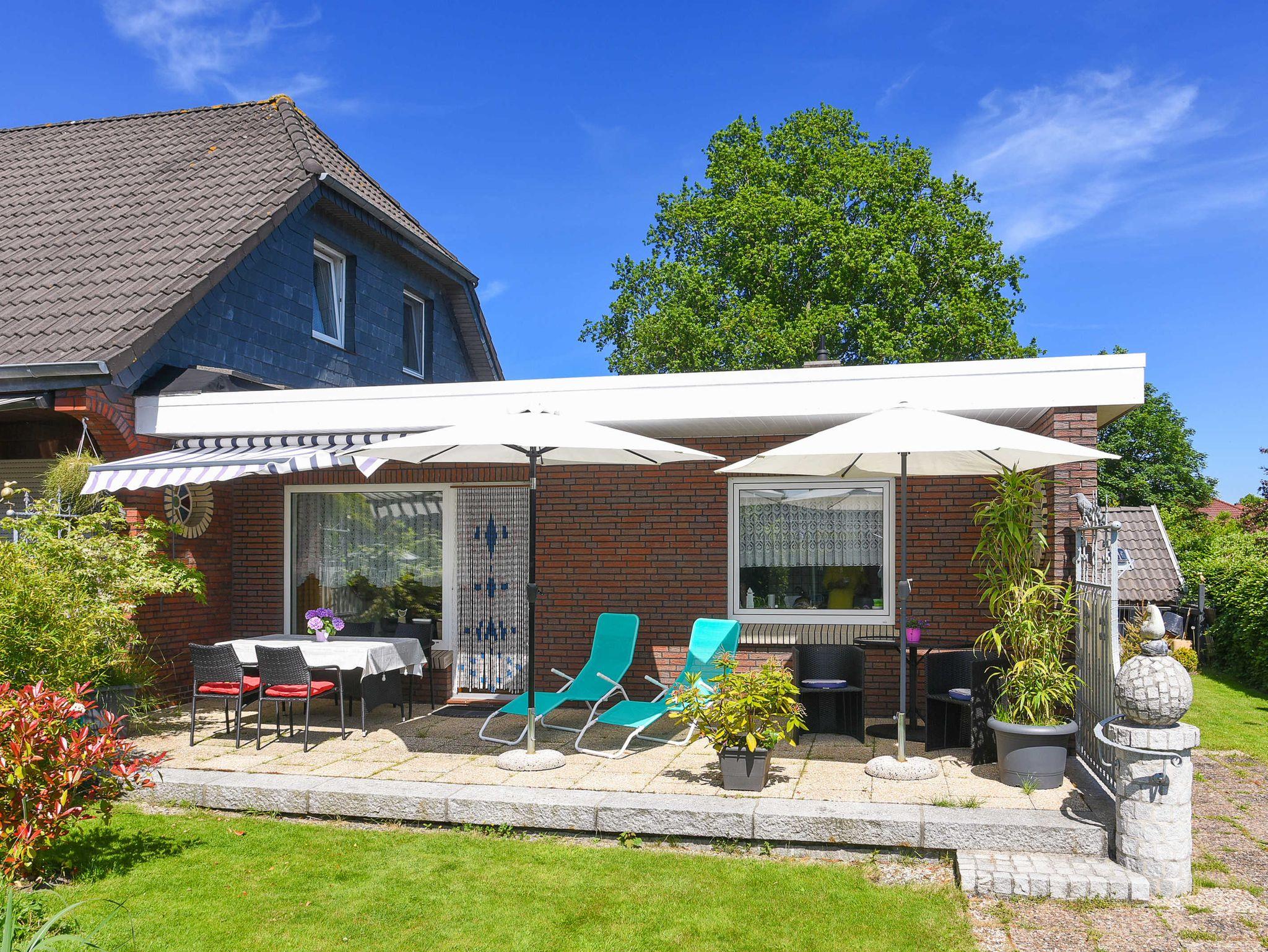 Gemütliches Ferienhaus Meer in Esens, ideal für Nordsee-Urlaub mit Terrasse und moderner Ausstattung.