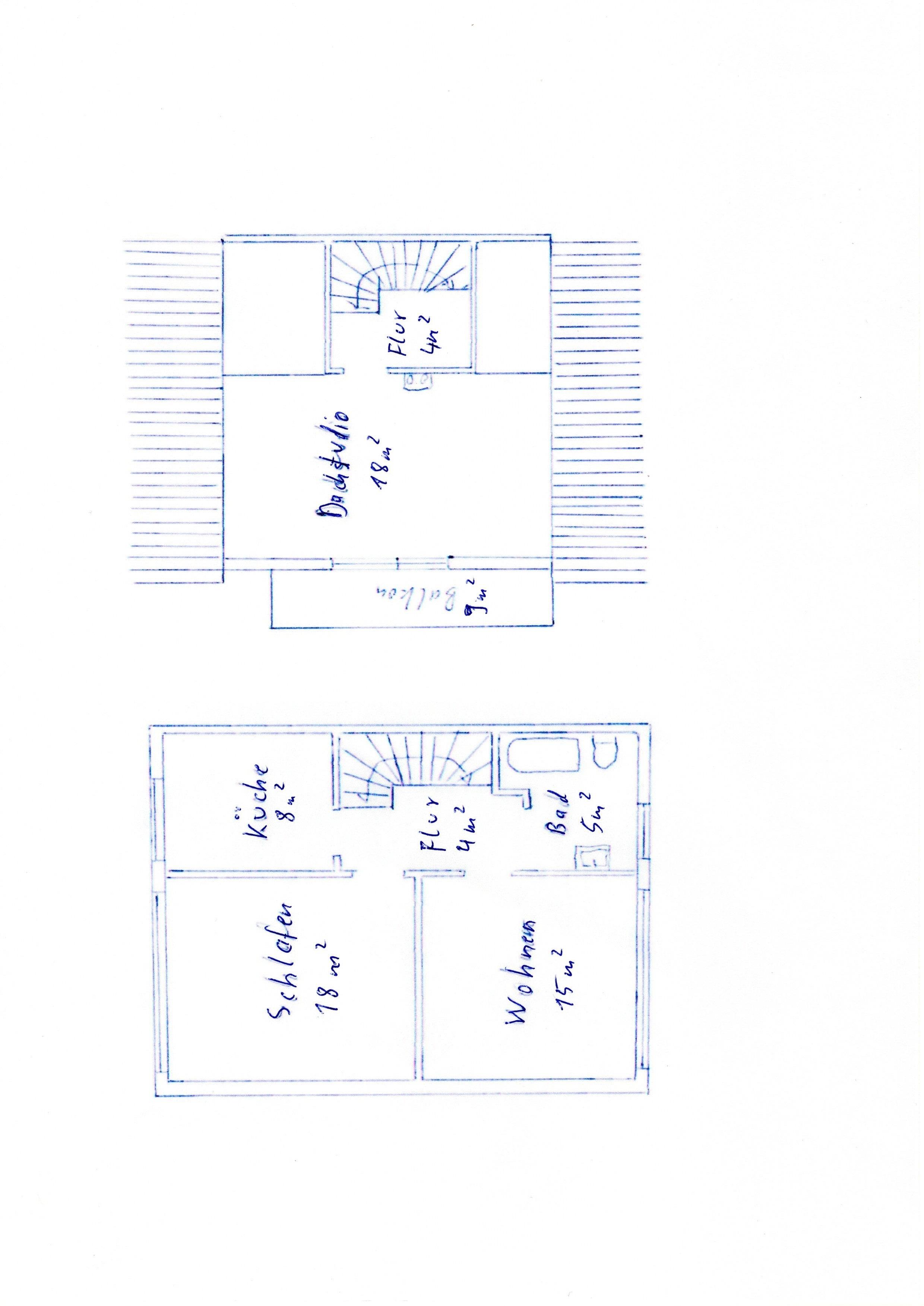 Die Wohnung befindet sich im ERSTEN STOCK und ist über ZWEI ETAGEN verteilt. Sie teilt sich auf in ein Wohnzimmer mit 2 Zweiersofas, Couchtisch, Beistelltisch, Schrank mit Barfach, Fernseher, SAT-Receiver, WLAN, DVD/BlueRay-Player und Stereoanlage. Sowie ein Schlafzimmer mit Doppelbett, Nachtschränken, Kleiderschrank, großem Spiegel und Sitzgelegenheit. Die Küche ist ausgestattet mit einem Essplatz mit Tisch und 2 Stühlen, Zwei-Platten-Ceranfeld, Mikrowelle, Kühlschrank mit Gefrierfach, Kaffeemaschine, Wasserkocher, Toaster, Eierkocher. Im Bad/WC befindet sich eine Wanne mit Duschabtrennung (hoher Einstieg). Im Dachgeschoss gibt es eine weitere Couch und einen Flat-TV mit DVD-Player sowie einen großen Balkon mit herrlicher Aussicht auf Schleswig und die Schlei.