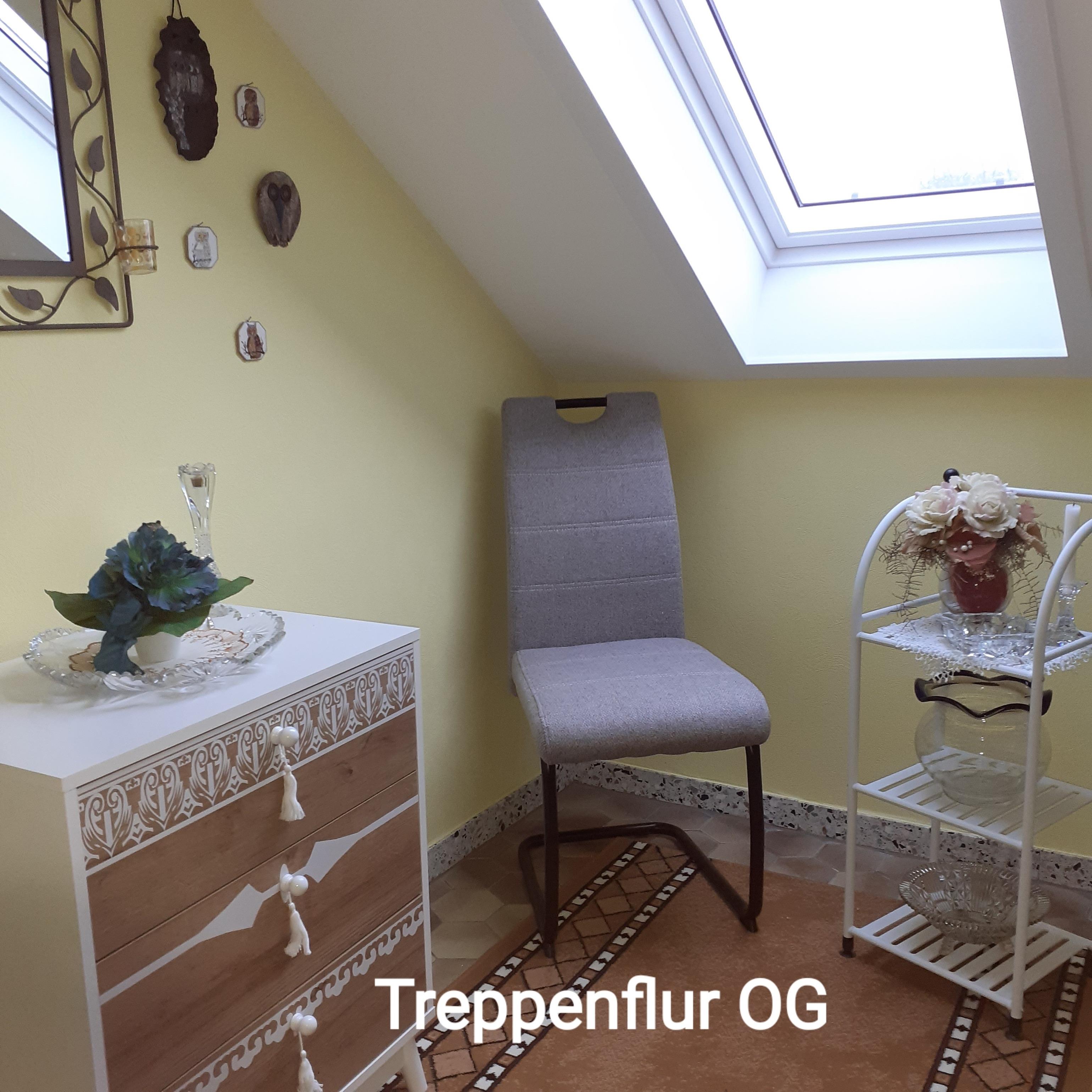 Die liebevoll eingerichtete Ferienwohnung liegt im Obergeschoss eines ruhigen Einfamilienhauses mit Terrasse, Garten, Teich mit Fischbesatz und Blockhütte (Aufenthaltsort für Gäste).
