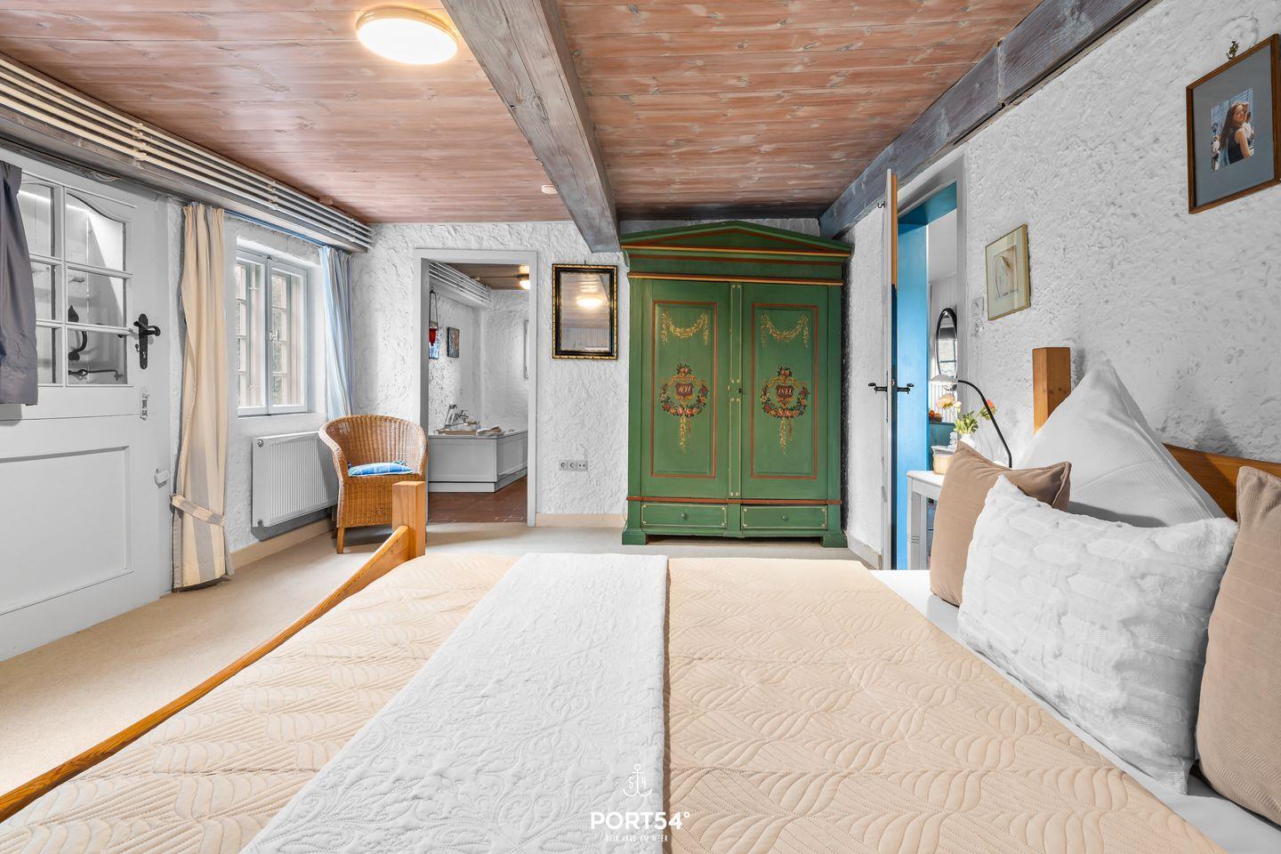 Willkommen im Reetdachhaus Holländerdeich in Fahretoft, Ihrem perfekten Rückzugsort an der malerischen Nordsee. Dieses freistehende historische Ferienhaus mit großem Garten nach Süden bietet Platz für bis zu sieben Gäste und ist ideal für Familien oder Paare, die eine entspannende Auszeit in ländlich-ruhiger Umgebung suchen. Mit einer Gesamtfläche von fünf Zimmern, darunter drei Schlafzimmer, und zwei großzügigen Terrassen ist das Haus komfortabel konzipiert, um all Ihre Bedürfnisse zu erfüllen. Das Innere des Ferienhauses ist geschmackvoll und funktional eingerichtet und ausgestattet. Die Küche ist mit sämtlichen erforderlichen Geräten bestückt, einschließlich einer Spülmaschine, einem Cerankochfeld, einem Elektrobackofen, einer Mikrowelle mit Grill, einem Kühlschrank mit Gefrierfach und weiteren nützlichen Küchenutensilien. Die beiden Esstische in Wohnzimmer und Küche sowie Sofas und Couchtisch laden dazu ein, gesellige Abende zu verbringen, während Sie den Blick durch die Fenster an den alten Bäumen vorbei in die weite Landschaft genießen. Eine komfortable Ausstattung sorgt für einen angenehmen Aufenthalt: Das Wohnzimmer ist mit einer Soundbar und einem Smart-TV ausgestattet, sodass Sie auch in Ihren freien Stunden nicht auf Musik und Unterhaltung nach Ihrem eigenen Geschmack verzichten müssen. Darüber hinaus befindet sich im Wohnbereich ein dekorativer Kamin, der nicht beheizt werden kann, aber für ein stimmungsvolles Ambiente sorgt. Neben dem Wohnzimmer bietet der «Pesel», eines der Schlafzimmer, einen gemütlichen Ort mit Sofabett, Sessel und Tisch zum stillen Rückzug zum Lesen oder Arbeiten. Freuen Sie sich auf zwei Badezimmer, eines davon mit einer Badewanne, während das andere eine bodengleiche Dusche bietet. Praktische Annehmlichkeiten wie eine Waschmaschine, ein Trockner und Bügelmöglichkeiten sind ebenfalls vorhanden. Für die kleinen Gäste stehen ein Kinderhochstuhl, im Obergeschoss eine große Spielfläche sowie ausreichend Platz im Garten zur Verfügung, wo sie ungestört spielen können. Die zwei Terrassen sind nach Süden und nach Westen gelegen, sodass Sie sowohl Mittags- als auch Abendsonne genießen können. Vielfältige Sitz- und Liegemöglichkeiten laden zum Ausspannen oder auch zur Beobachtung der zahlreichen und vielfältigen Zugvögel ein. Das Ferienhaus ist ein Nichtraucherhaus und bietet Ihnen zudem Parkmöglichkeiten, um Ihren Aufenthalt so angenehm wie möglich zu gestalten. Die Lage des Hauses ist besonders attraktiv: Es befindet sich ca. 300 Meter von einem See entfernt und bietet somit eine direkte Anbindung an unvergessliche Naturschönheiten. Für romantische Spaziergänge oder sportliche Aktivitäten wie Radfahren und Wandern bieten sich die Umgebung und die hervorragenden Landschaftsblicke an. Die Nordseeküste mit Blick auf das Wattenmeer und die Halligen ist nicht weit entfernt. Sie können die Seele baumeln lassen, während Sie die Aussicht auf die umliegende Natur bewundern oder einmal eine Wattwanderung unternehmen. Ob Sie Abenteuer in der Natur suchen oder einfach nur entspannen möchten, das Reetachhaus Holländerdeich ist die ideale Wahl für Ihren nächsten Urlaub. Sichern Sie sich Ihren Aufenthalt und erleben Sie unvergessliche Tage in dieser bezaubernden Region.