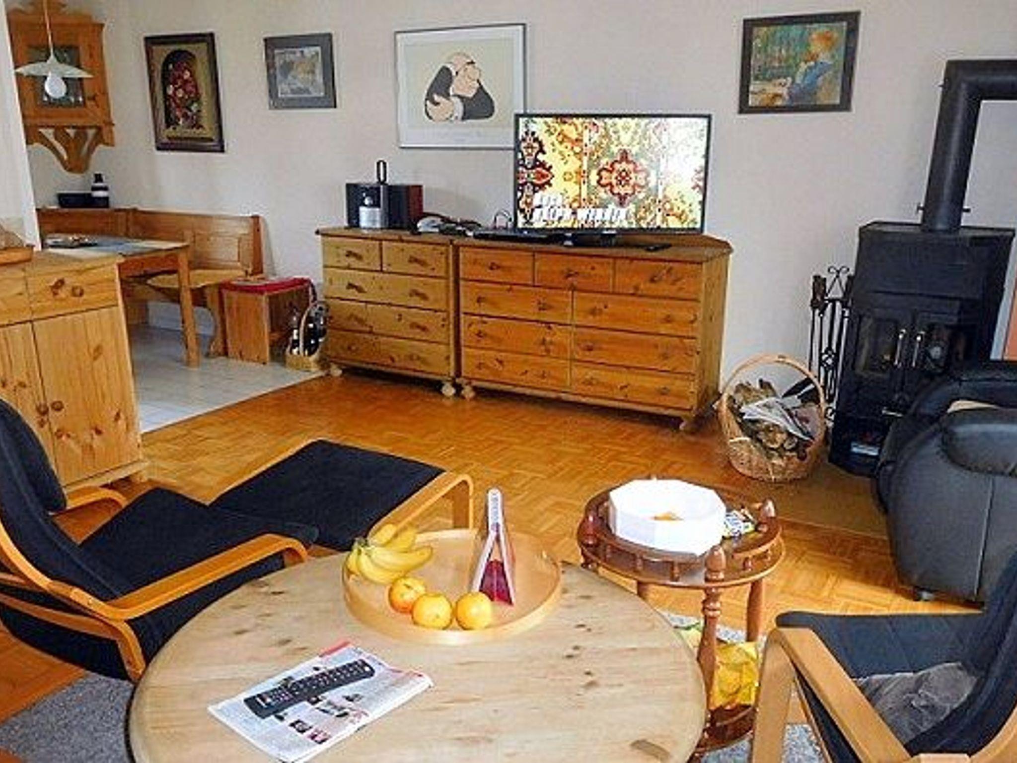 Sie wohnen in einem 3-Zimmer-Appartement für bis zu 6 Personen auf ca. 80 m² Wohnfläche im Erdgeschoss. Ein Schlafraum mit Doppelbett, ein Schlafzimmer mit zwei getrennten Betten und eine Schlafcouch für zwei Personen. Wohnraum mit hübscher Sitzgarnitur, separater Essplatz, Kaminofen, voll ausgestattete, Einbauküche NOLTE mit Elektrogeräten, Spüle und Mikrowelle, Gefrierbox , Diele mit Garderobe, Flur, Dusche/WC mit 1.Hilfe-Sanitärbox und separates WC, beide Sanitärbereiche mit Fußbodenbeheizung, Terasse, großer Flachbild - TV, Blue-Ray-Player, mittelgroßer 80-cm Flachbildschirm und extra Kleiderständer im 2. Schlafzimmer, Bügelbrett, Safe, Telefon.