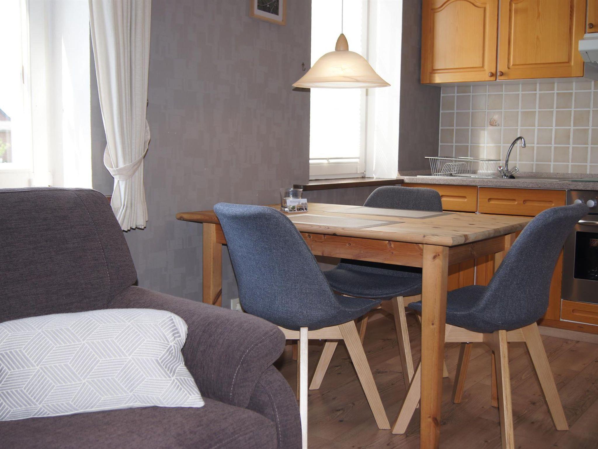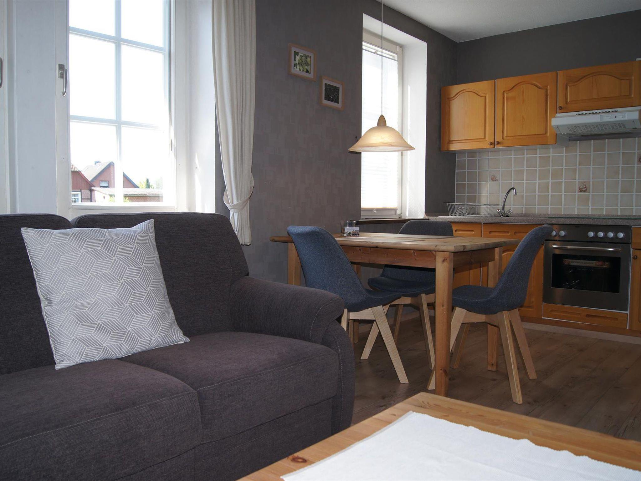 Die Ferienwohnung ist 36 m² groß, modern möbliert und besteht aus einem Wohnzimmer mit Essecke und Küchenzeile, einem sep. Schlafzimmer und Bad mit Dusche und WC. Die Küchenzeile ist komplett eingerichtet mit Herd, Backofen, Mikrowelle, Toaster, Wasserkocher und Kaffeemaschine (keine Spülmaschine). In der Wohnung befinden sich auch eine Stereoanlage und ein TV-Gerät. Ein Babybett kann zusätzlich aufgestellt werden, hierfür berechnen wir inkl. Bettwäsche einmalig 10,00 Euro.