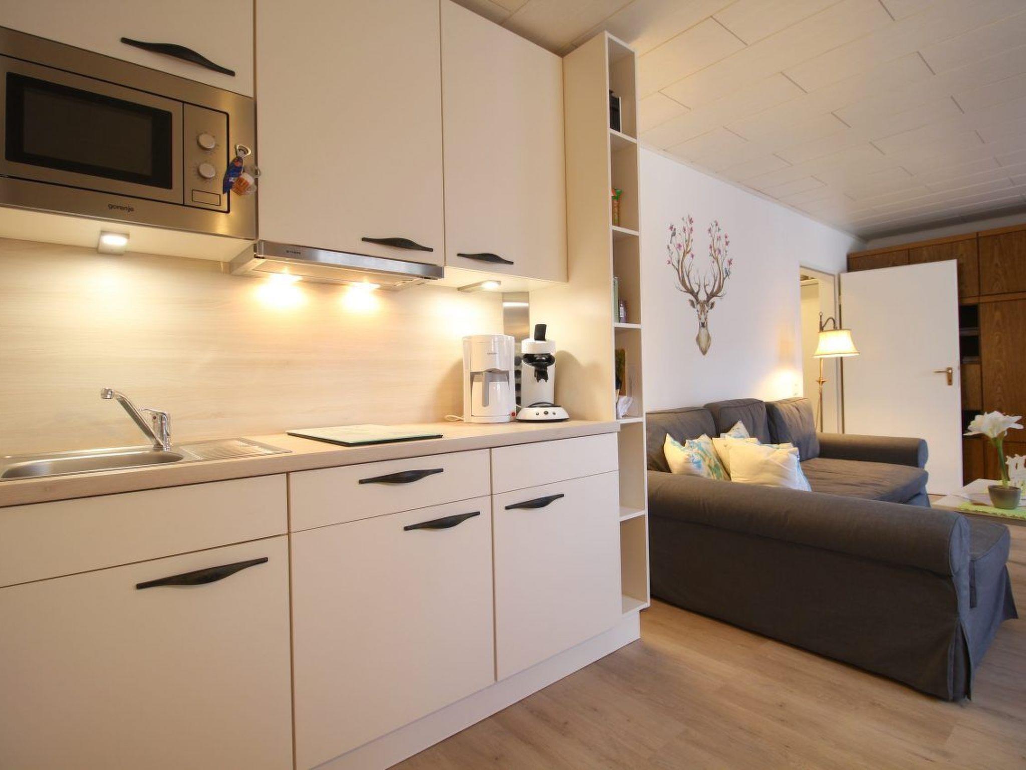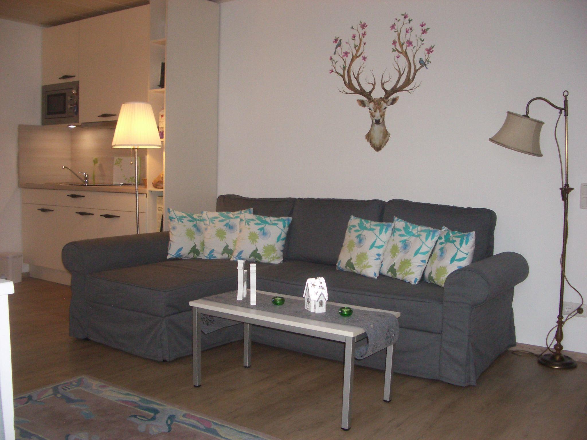 Die 1-Zimmer-Ferienwohnung Esterberg wurde 2017 neu eingerichtet, Fussboden, Essgruppe, Küchenzeile, Schlafsofa für 2 Personen, Elektrogeräte, Wanddekoration, Lampen sind neu, sowie ein Full HD-TV, Blueray-DVD-Player und eine Stereoanlage mit Blue-Tooth Funktion.