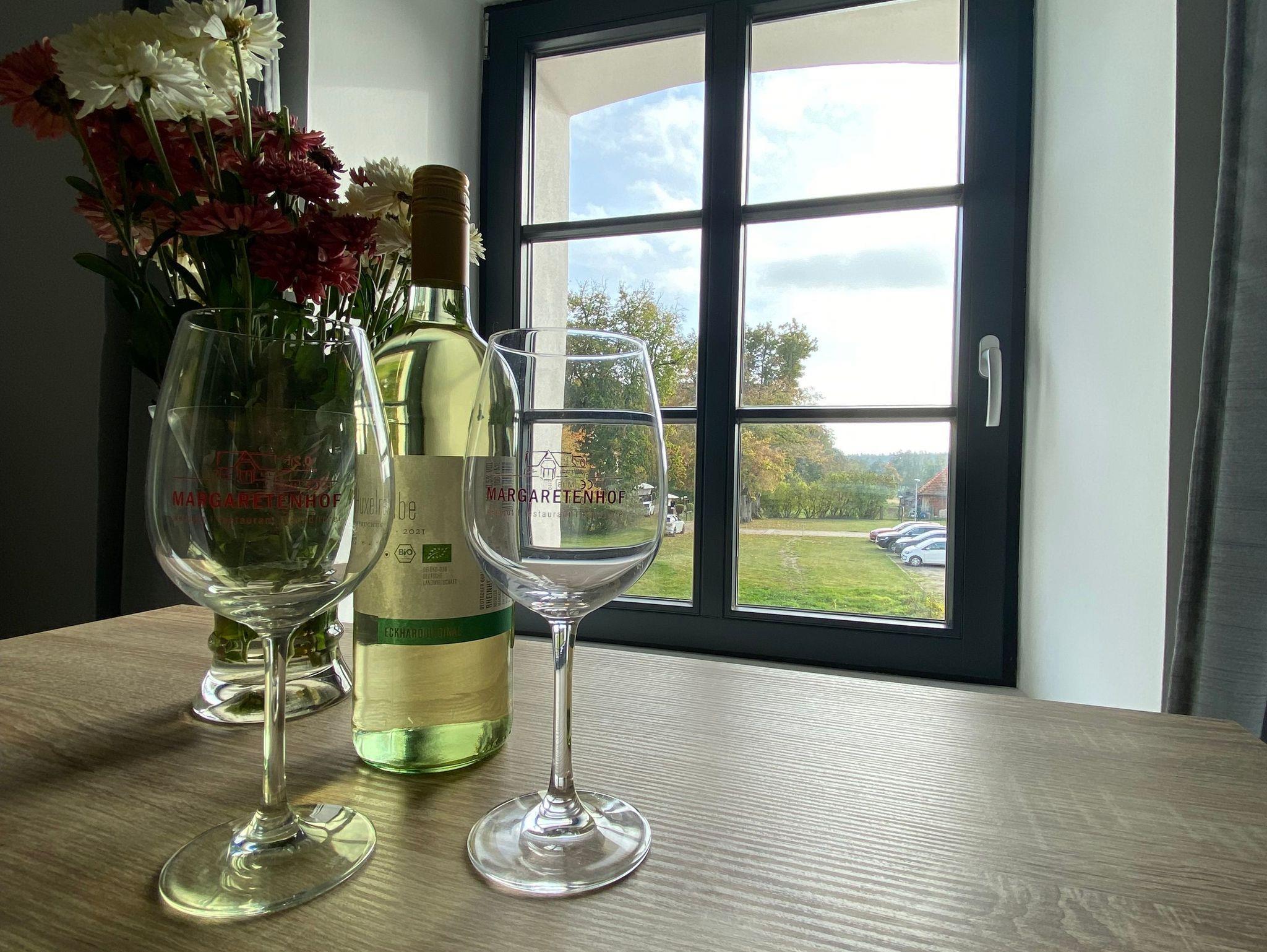 Ein Blick aus dem Fenster richtet sich auf den Gutshofpark und dem Parkplatz