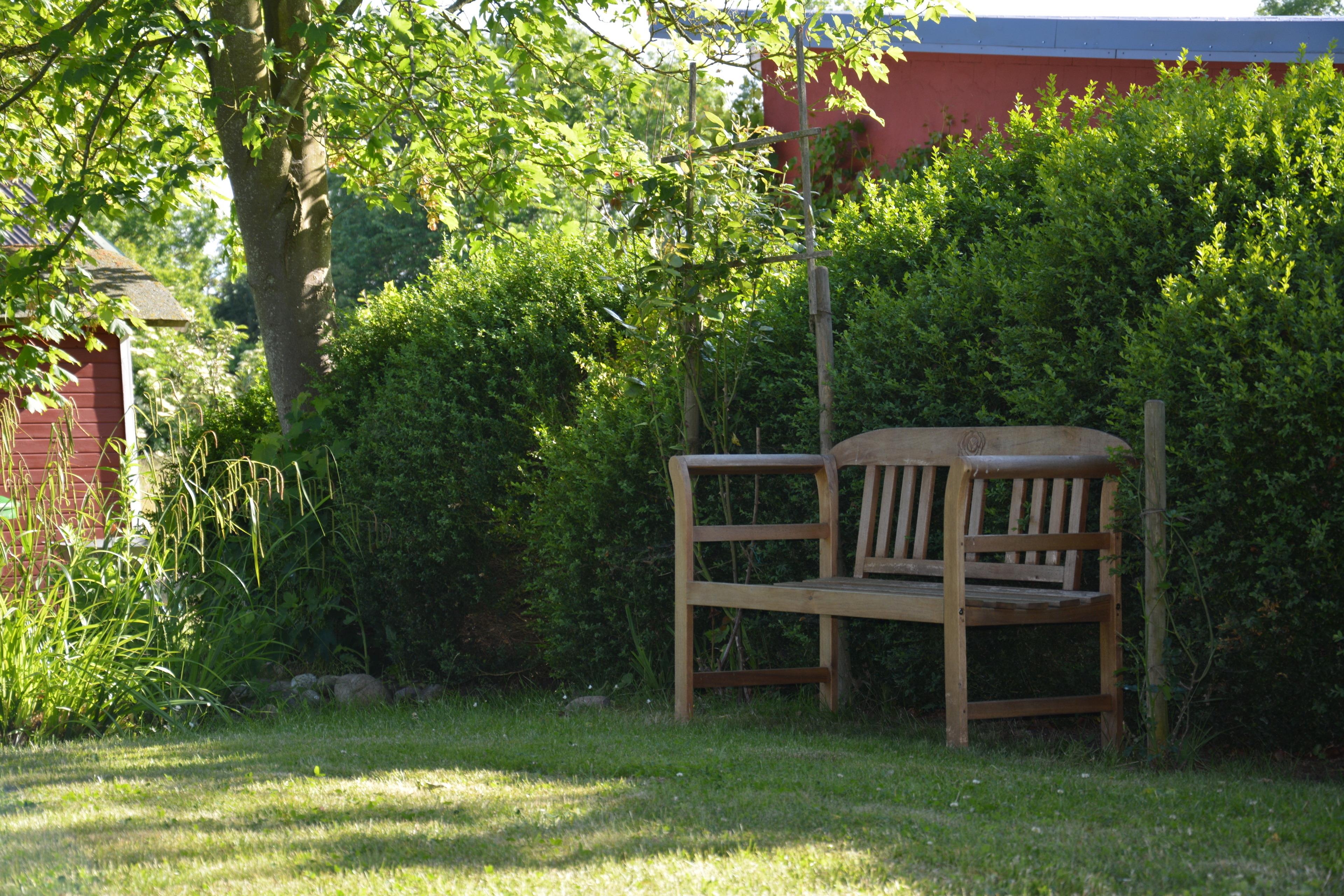 Hier finden Sie ebenfalls handgemachte Möbel aus unserer Werkstatt, ergänzt durch ein gemütliches Sofa und Korbsessel.