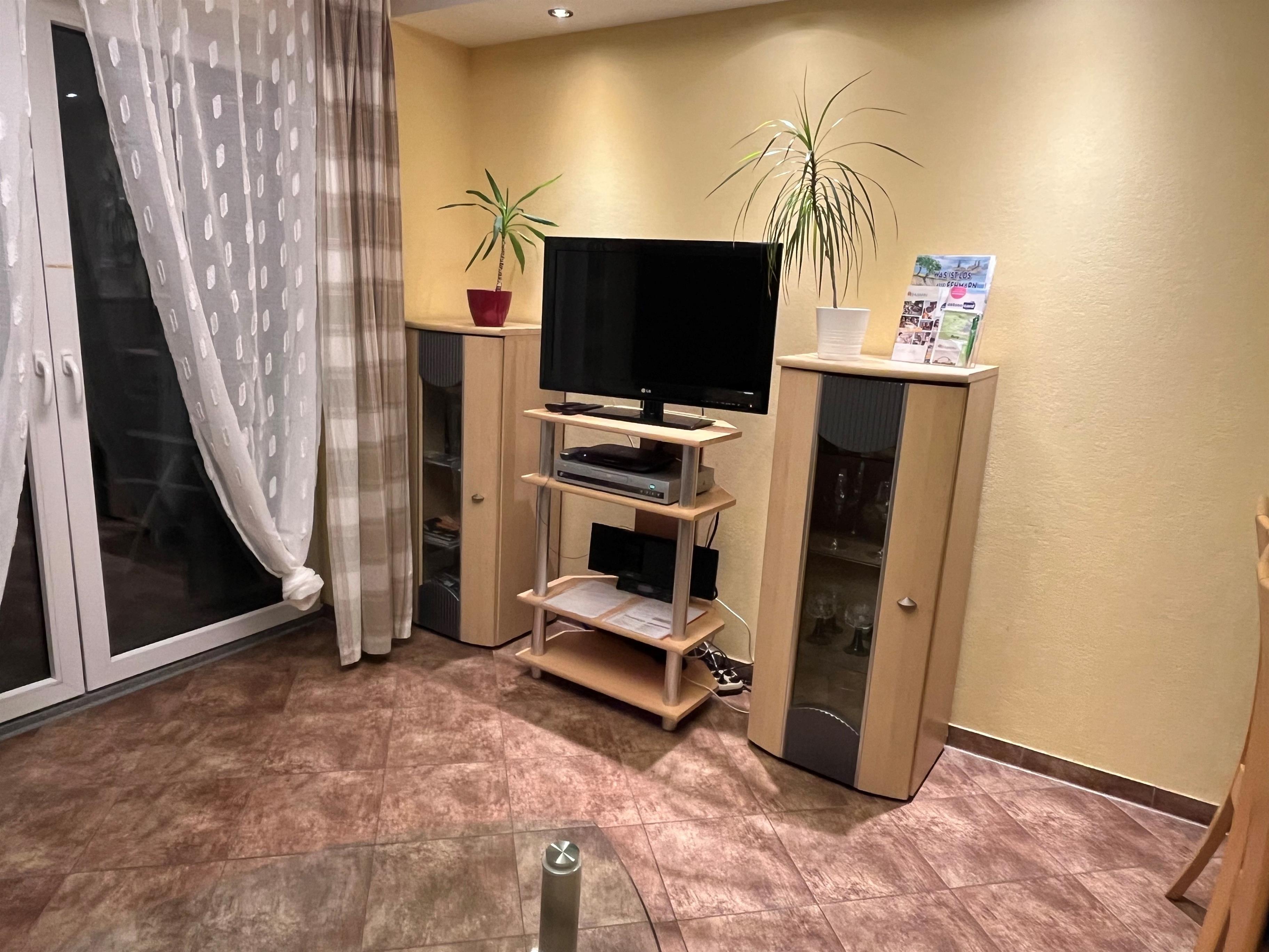 FW oder kleine DHH mit Terrasse und Garten. Die Wohnung bietet Platz für 2 Erwachsene. EG: kleiner Flur, schönes Wohnzimmer mit Sitz- und Essecke, großer Flachbildschirm, Magenta TV auch Radiosender über TV, Netfix etc. mit Anmeldung in Ihrem Account möglich. Küche zum Wohnraum hin offen, komplett ausgestattet: Backofen, Cerankochfeld, sehr leiser Geschirrspüler, Toaster, Mikrowelle, Kaffeemaschine und Nespresso.